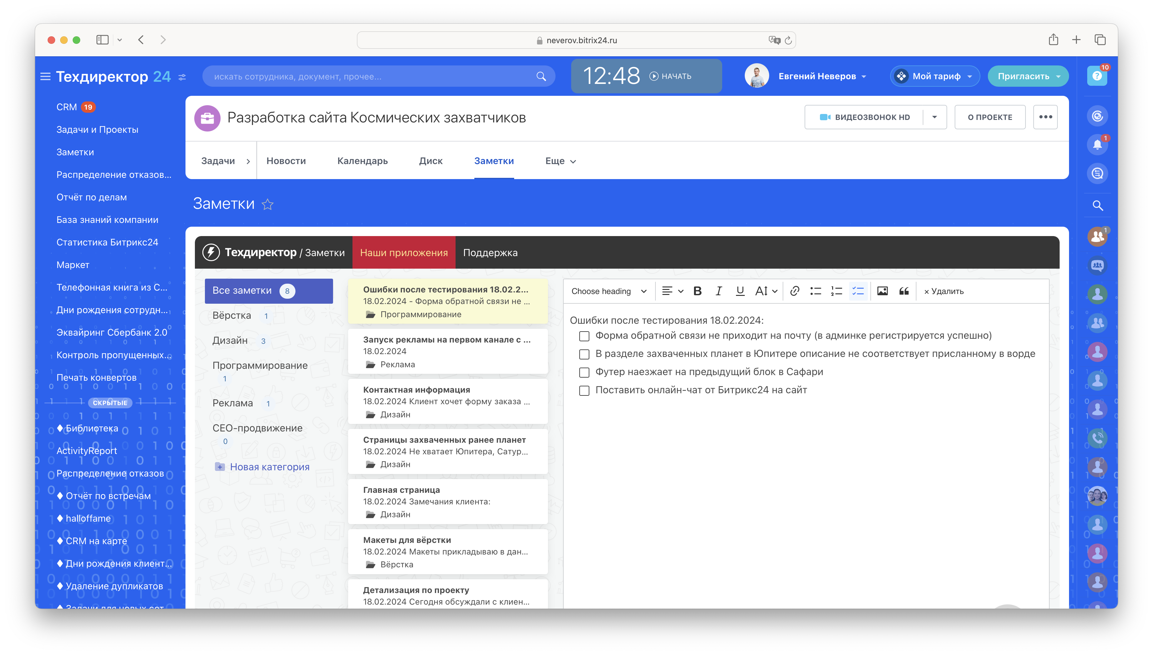Благодаря нашему приложению вы получите удобный инструмент для ведения заметок пользователями в Битрикс24.