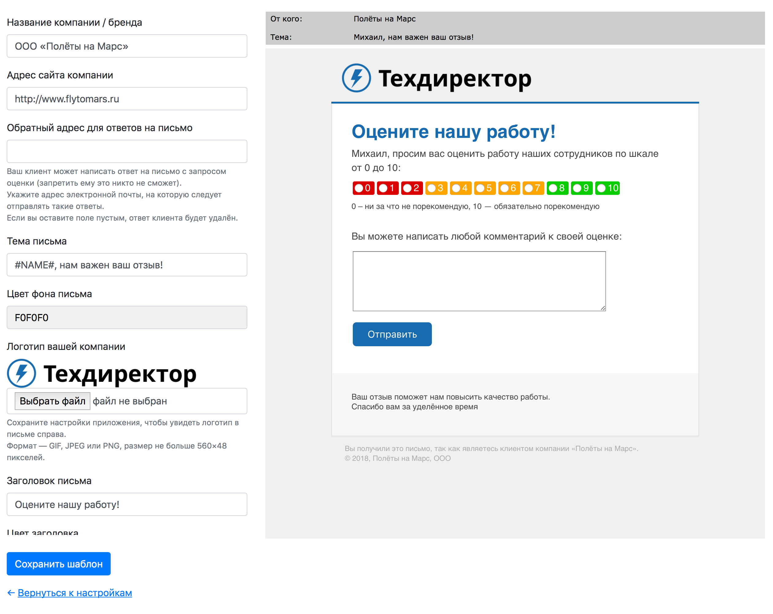 У нас много планов по модернизации данного модуля. Если у вас есть идеи — напишите нам на nps@tech-director.ru.