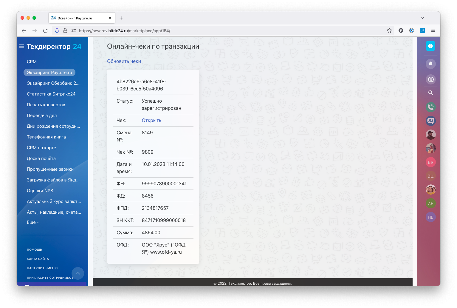 - Поддержка выпуска онлайн-чеков по 54-ФЗ