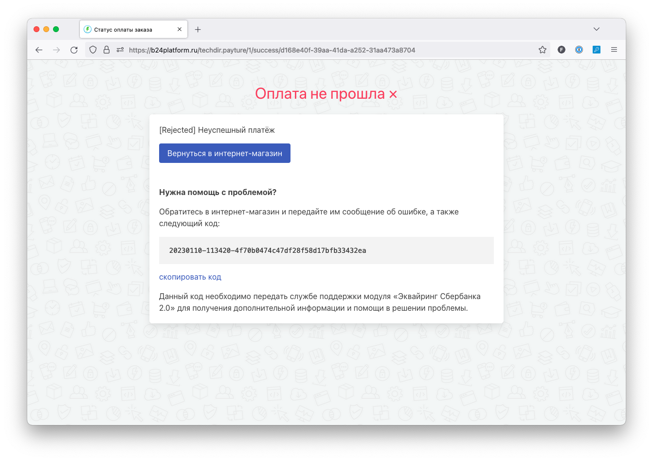 - У пользователя есть возможность оплатить заказ заново, если он ошибся при вводе платёжных данных