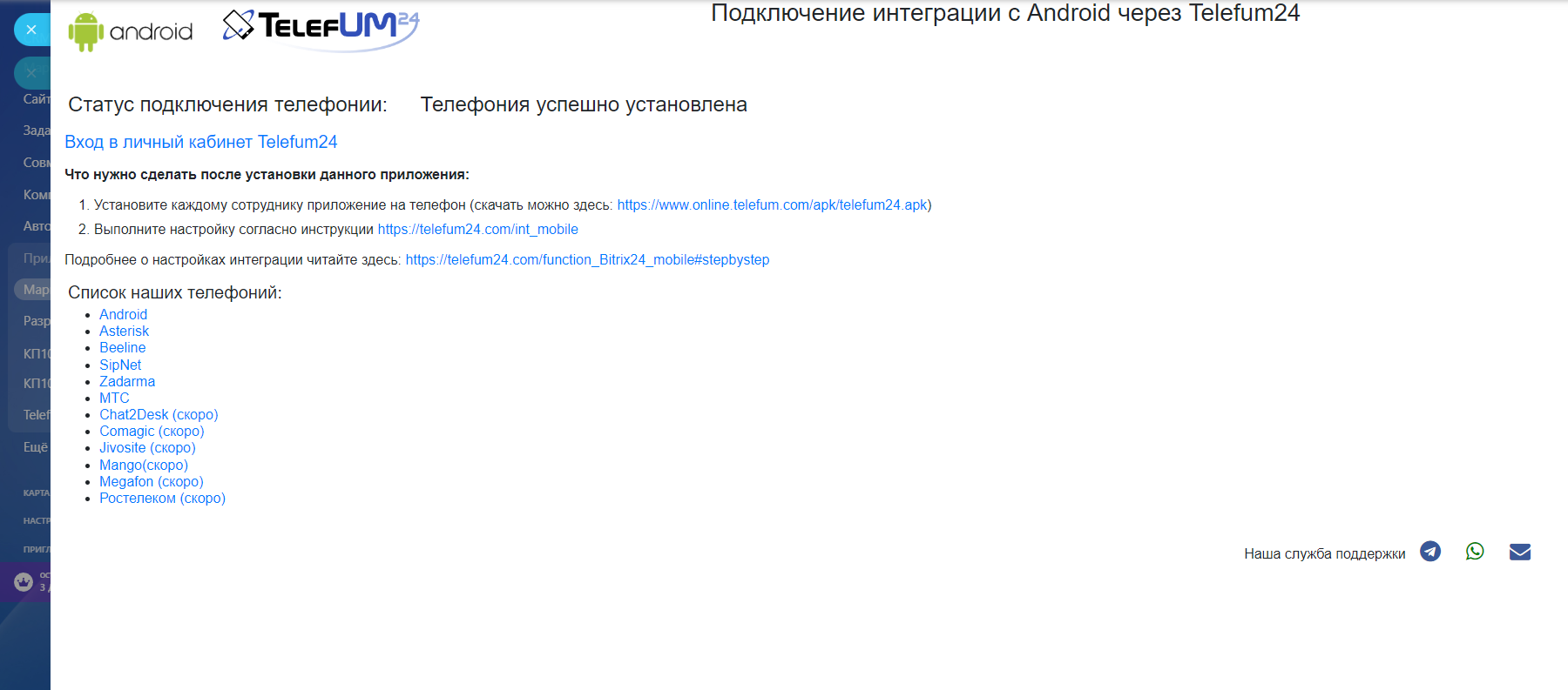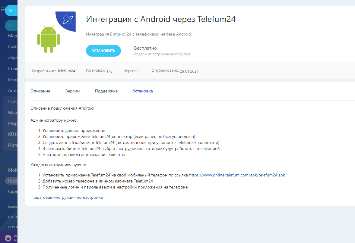 Интеграция Битрикс 24 с телефонами на базе Android.