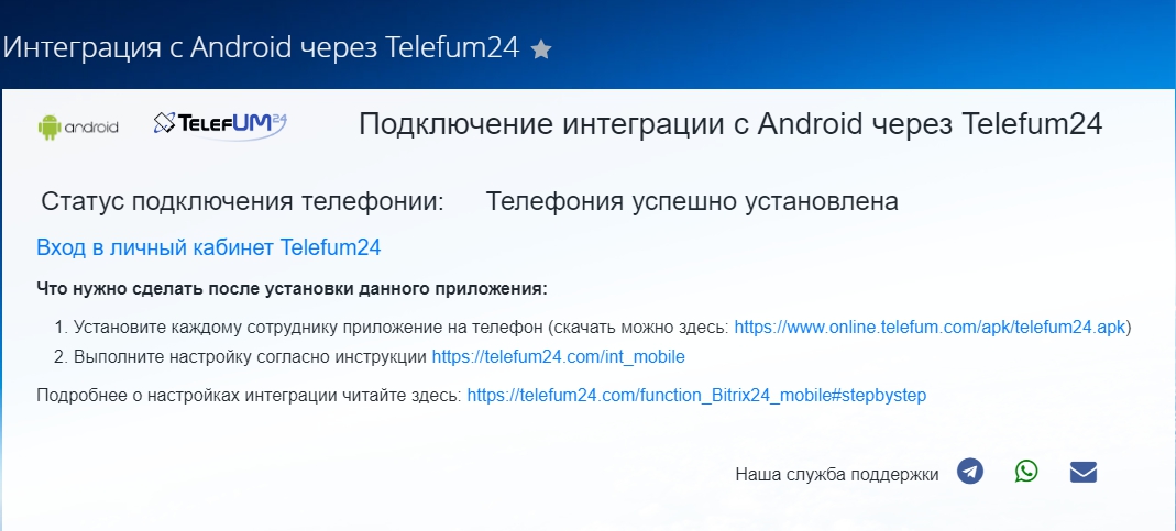 Приложение Telefum24_Android предназначено для подключения АТС на базе Asterisk к Битрикс24.