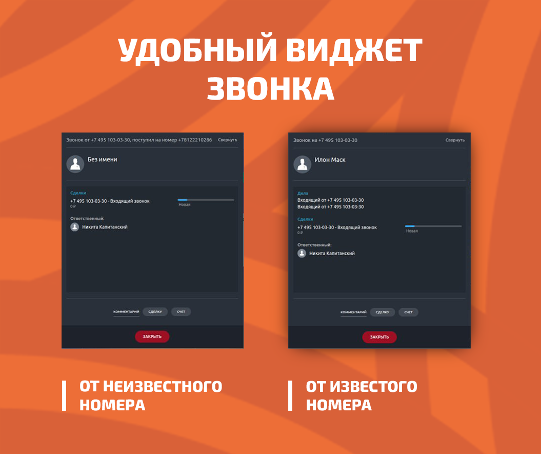 Создает контакт и сделку при входящей и исходящей голосовой коммуникации с новым клиентом
