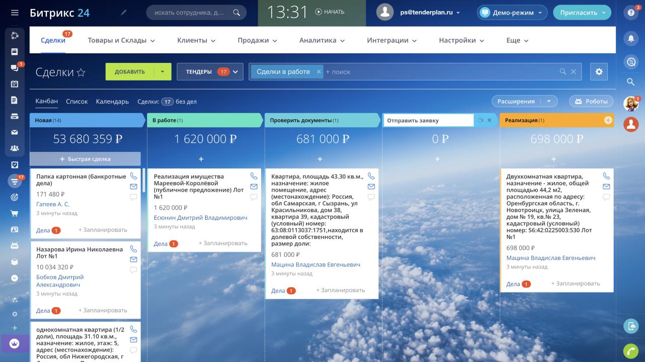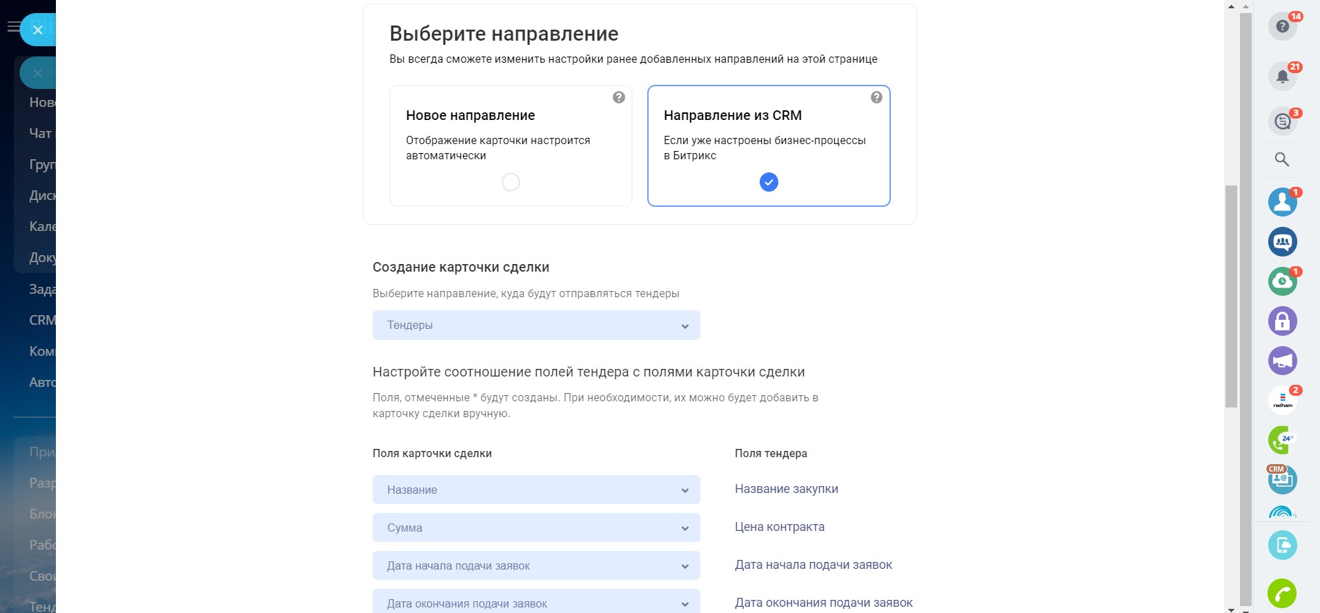 Прорывные алгоритмы сбора и обработки тендеров показывают закупки в системе практически мгновенно. Если Ваша компания уже давно пользуется Битрикс24 и привыкла к нему, можно с лёгкостью настроить взаимосвязь CRM и Тендерплана! Информация о закупках переносится прямо в систему, где можно изучить карточку тендера.