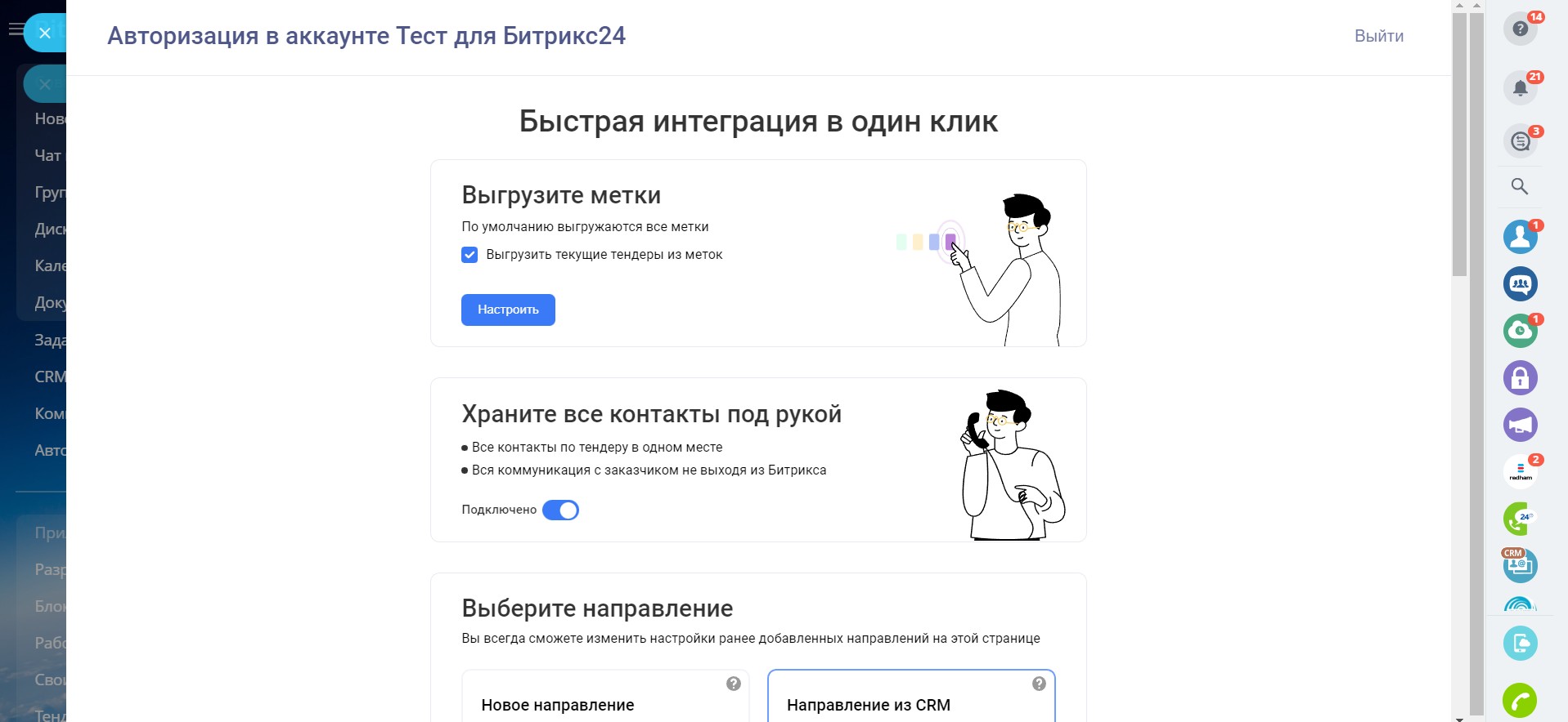 Авторизуйтесь в Тендерплане через Битрикс24.