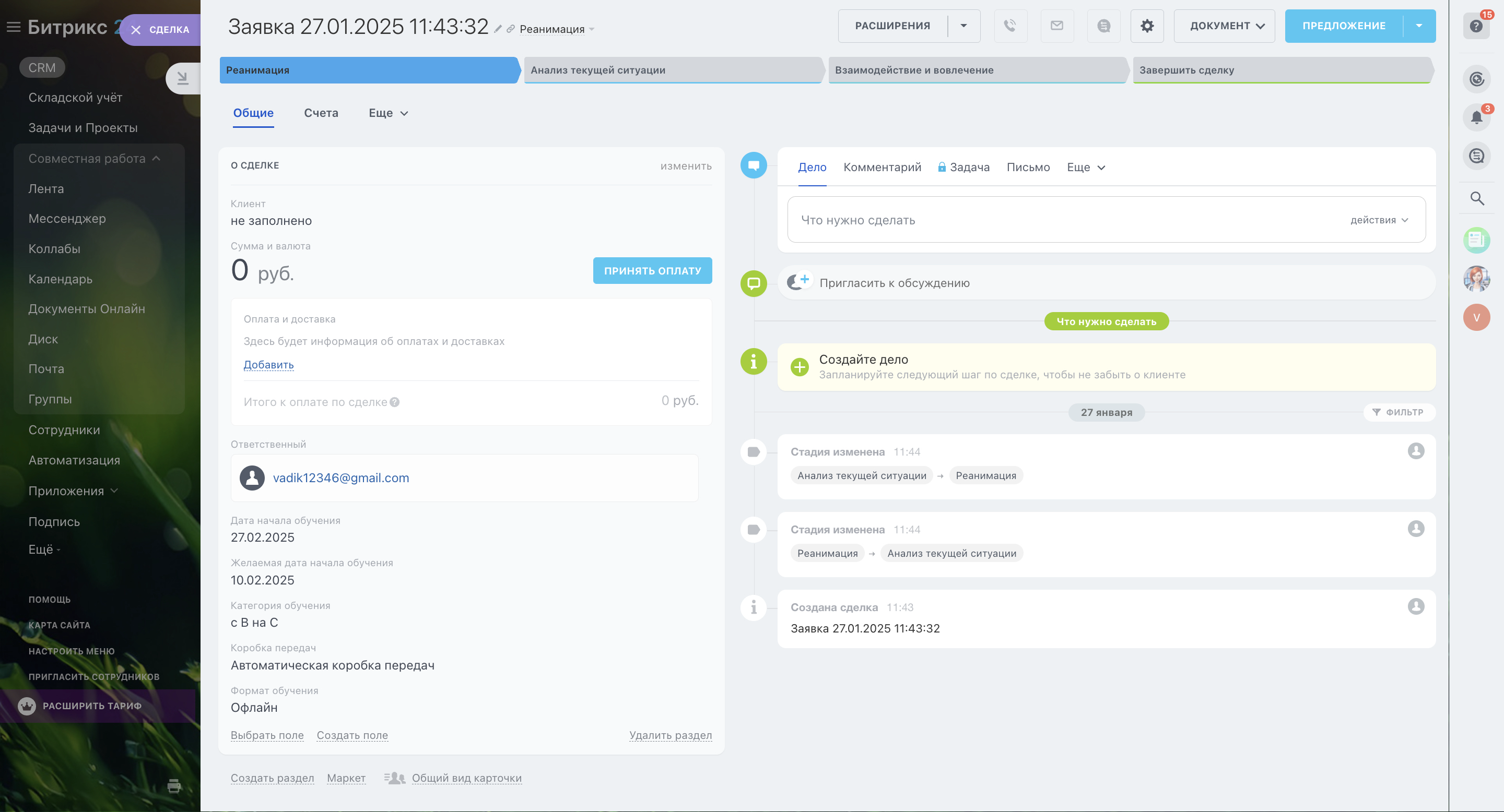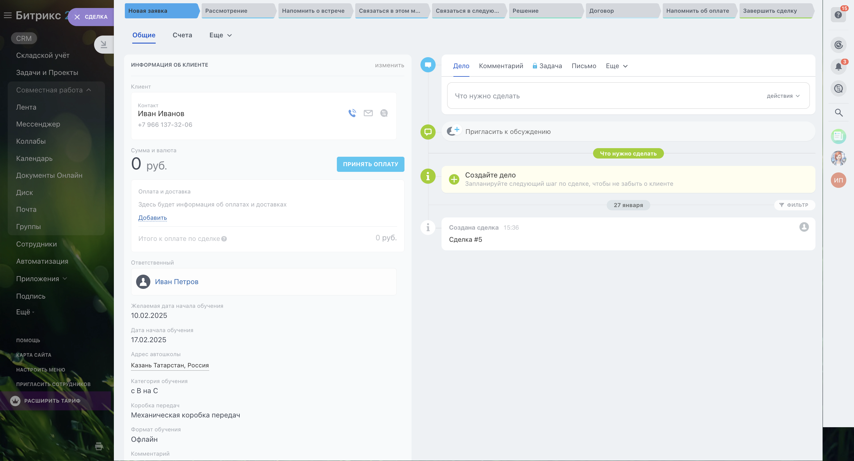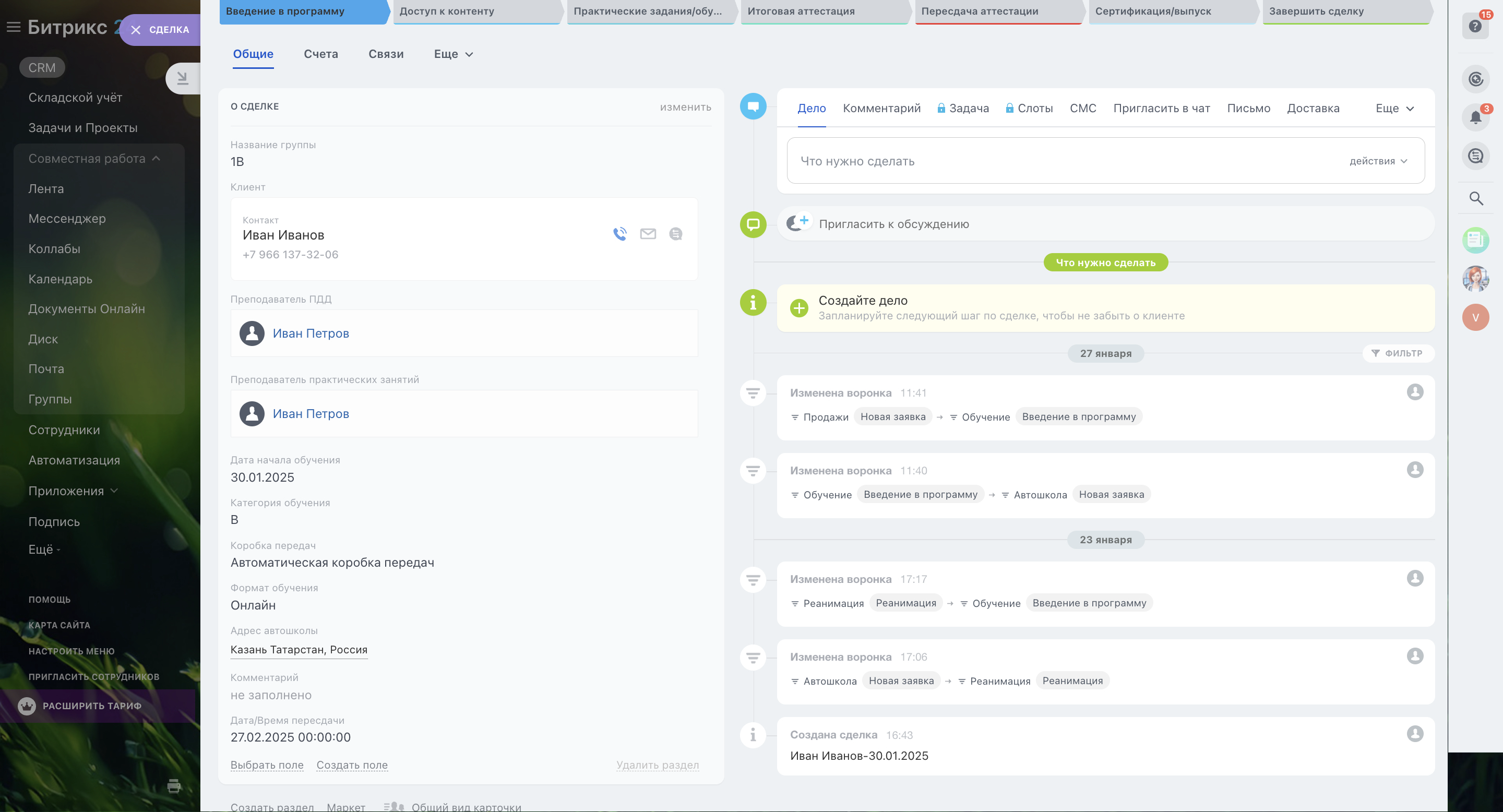 Автошкола. Настроенный Битрикс24 для Автошколы