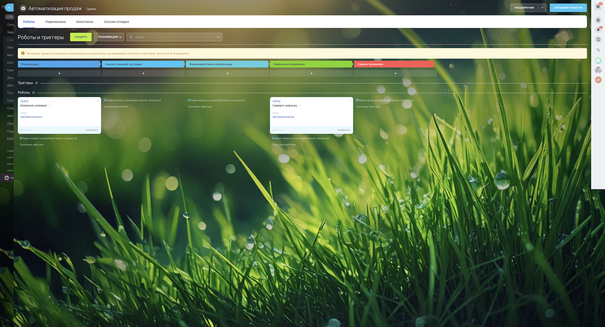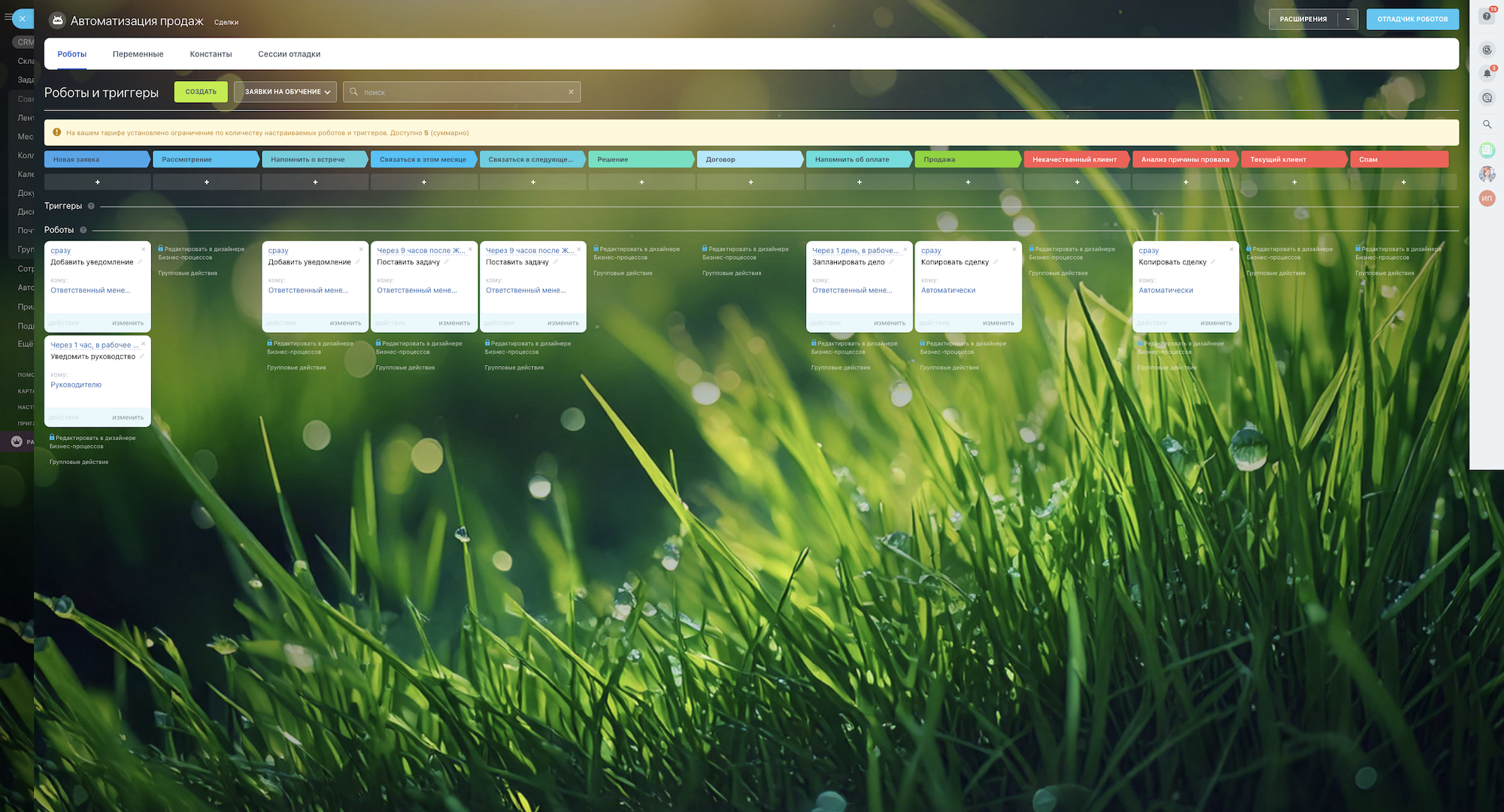 1. Роботы на этапе «Новая заявка» - отправляет уведомление ответственному за продажи о необходимости обработать заявку.