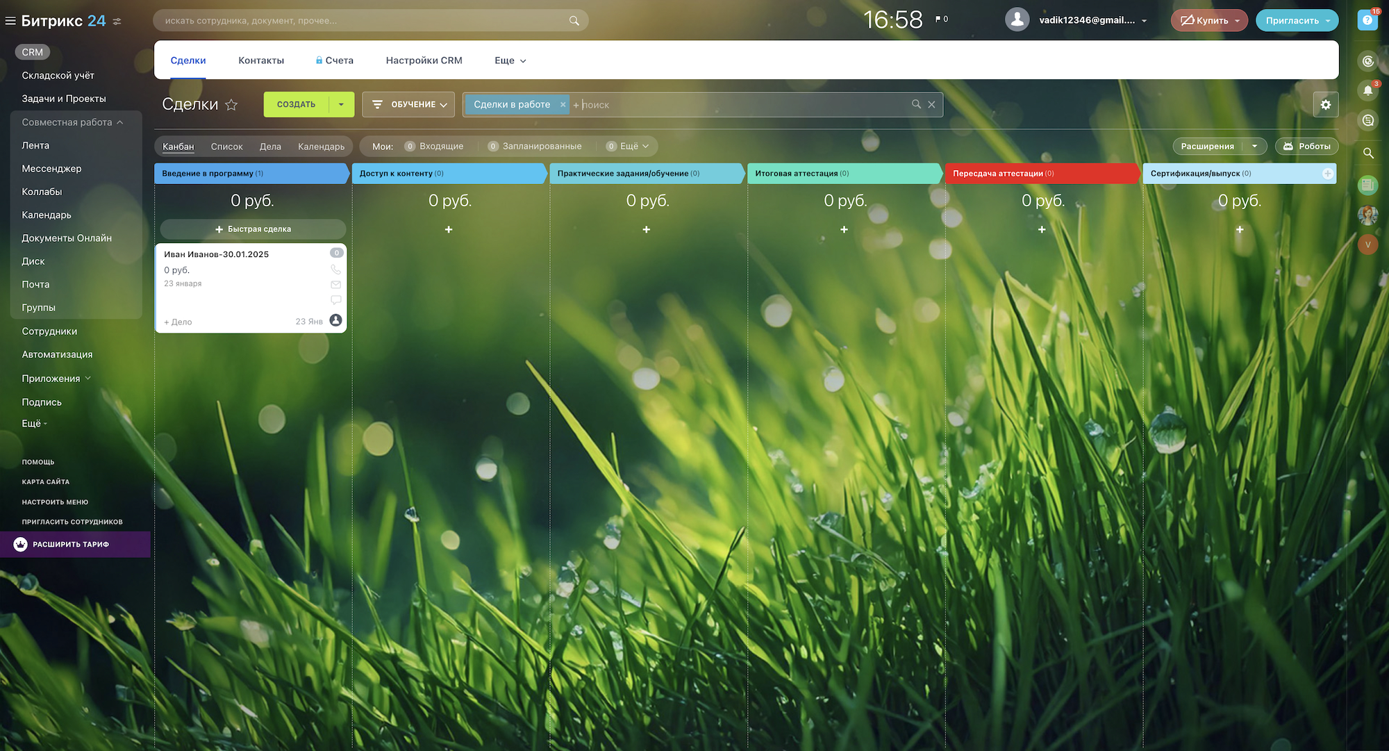 2. Обучение – Стадии: Введение в программу, Доступ к контенту, Практические задания/обучение, Итоговая аттестация, Пересдача аттестации, Сертификация/выпуск, Поддержка после обучения, Сделка провалена