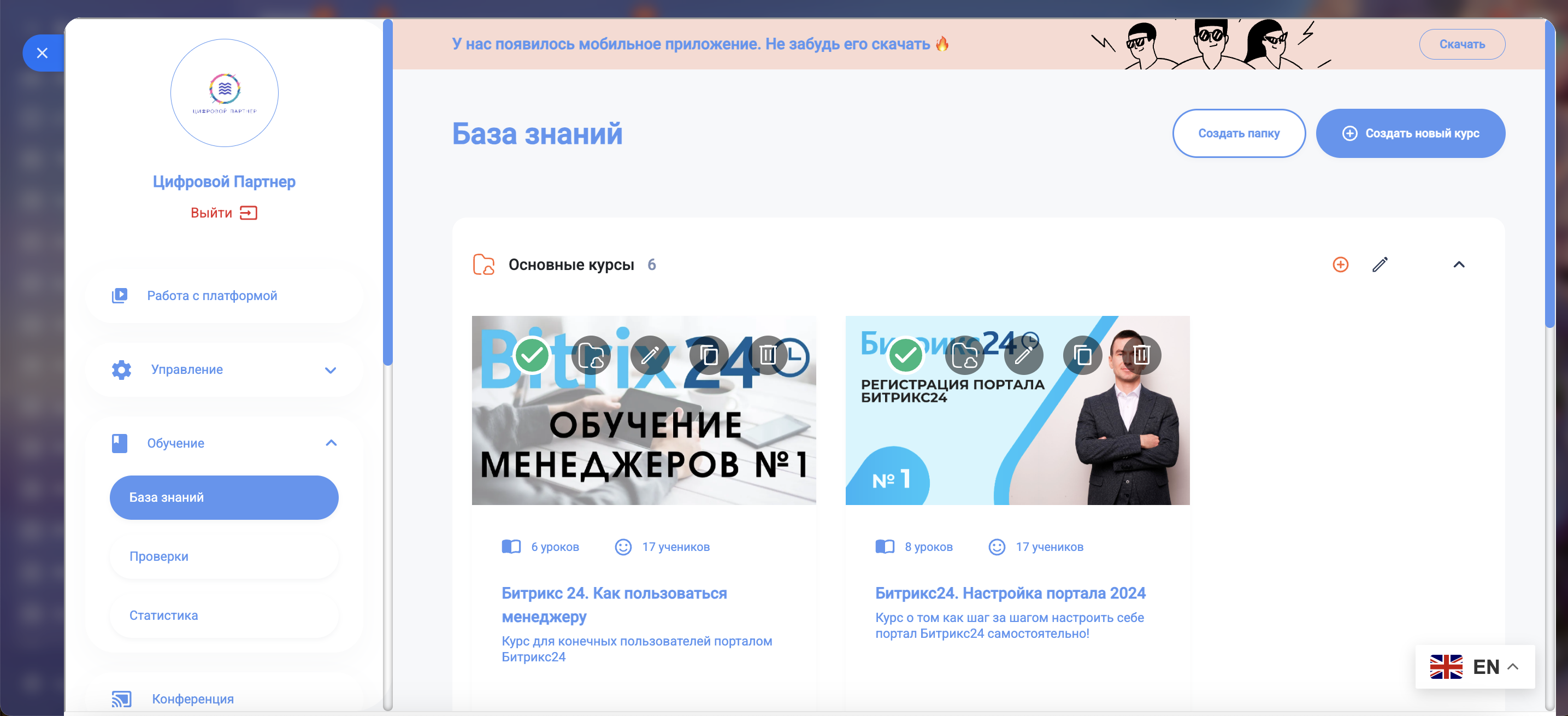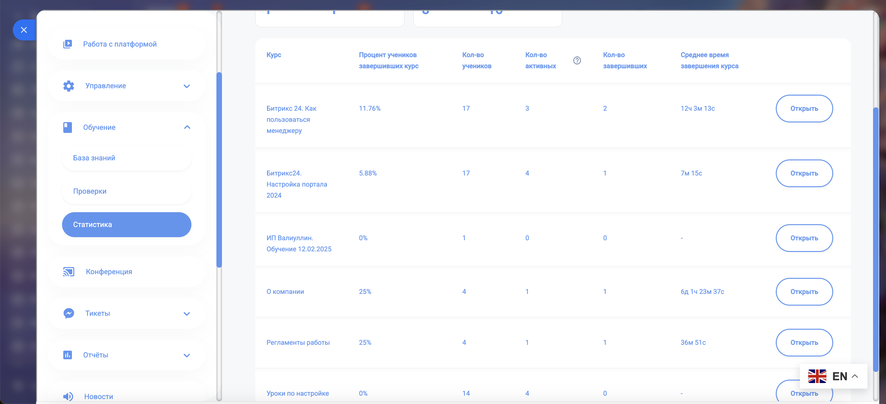 БОНУС: в системе находятся Курсы по самостоятельной настройке Битрикс24, а также курсы для сотрудников о том, как пользоваться Битрикс24.