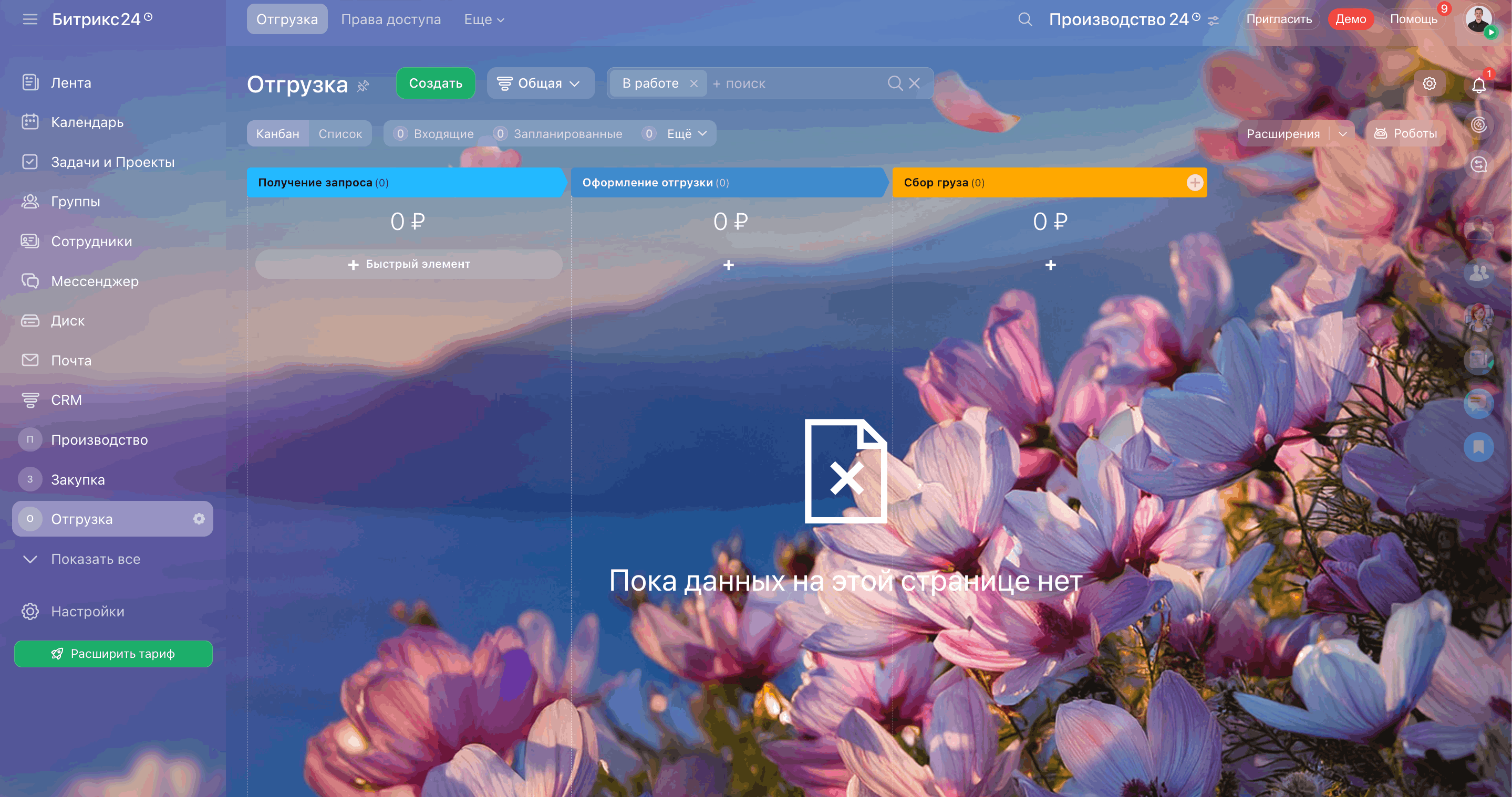 - Единое место для управления заявками от клиентов — от входящего обращения до завершения отгрузки.