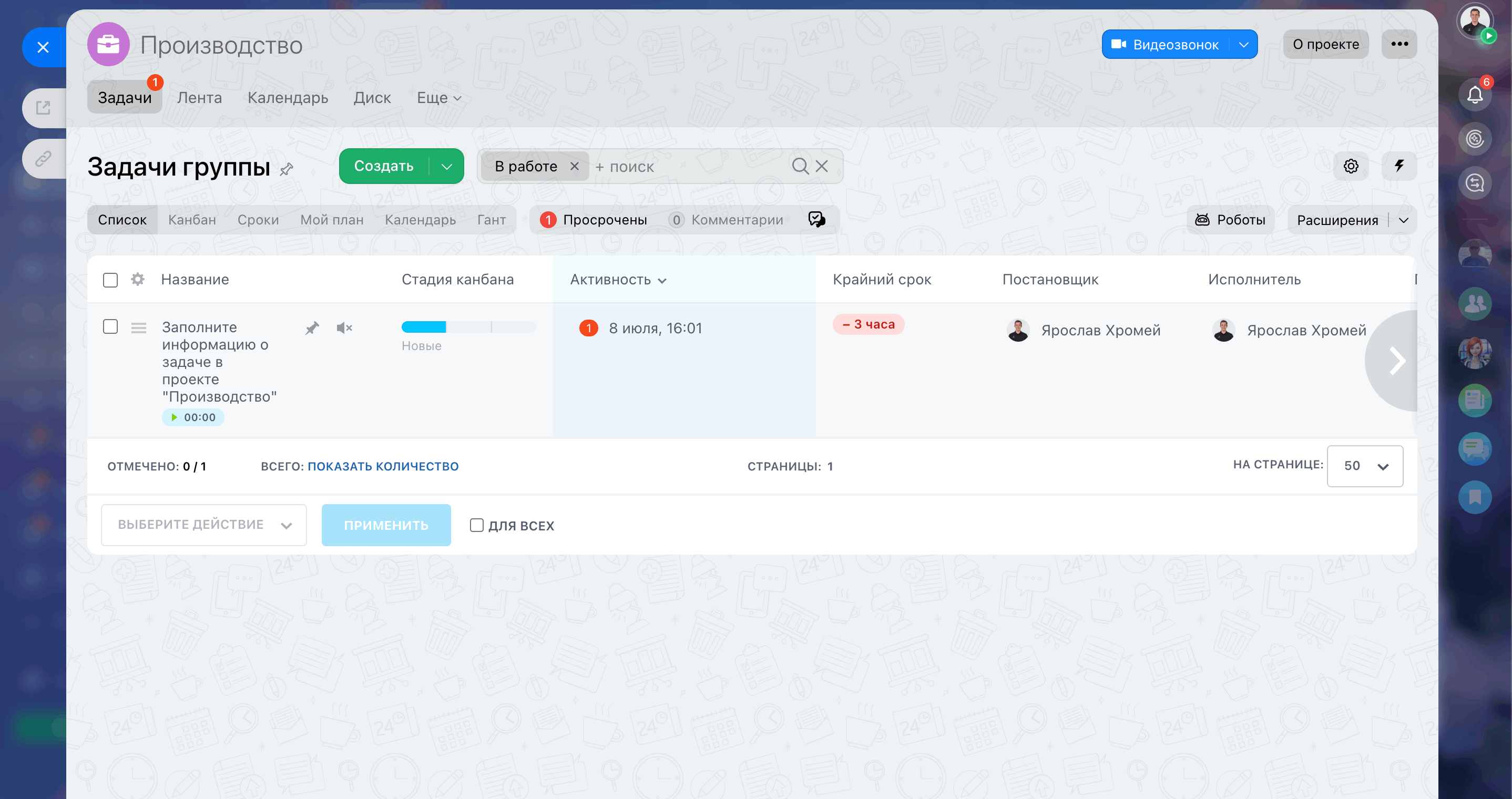 - Контроль выполнения задач на каждом этапе — менеджеры и руководители всегда видят, что и кем выполняется.
