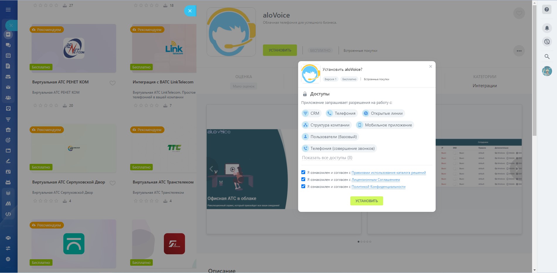 aloVoice - это бесплатная облачная-АТС на 2 пользователя, которая разворачивается автоматически и сразу готова к работе.