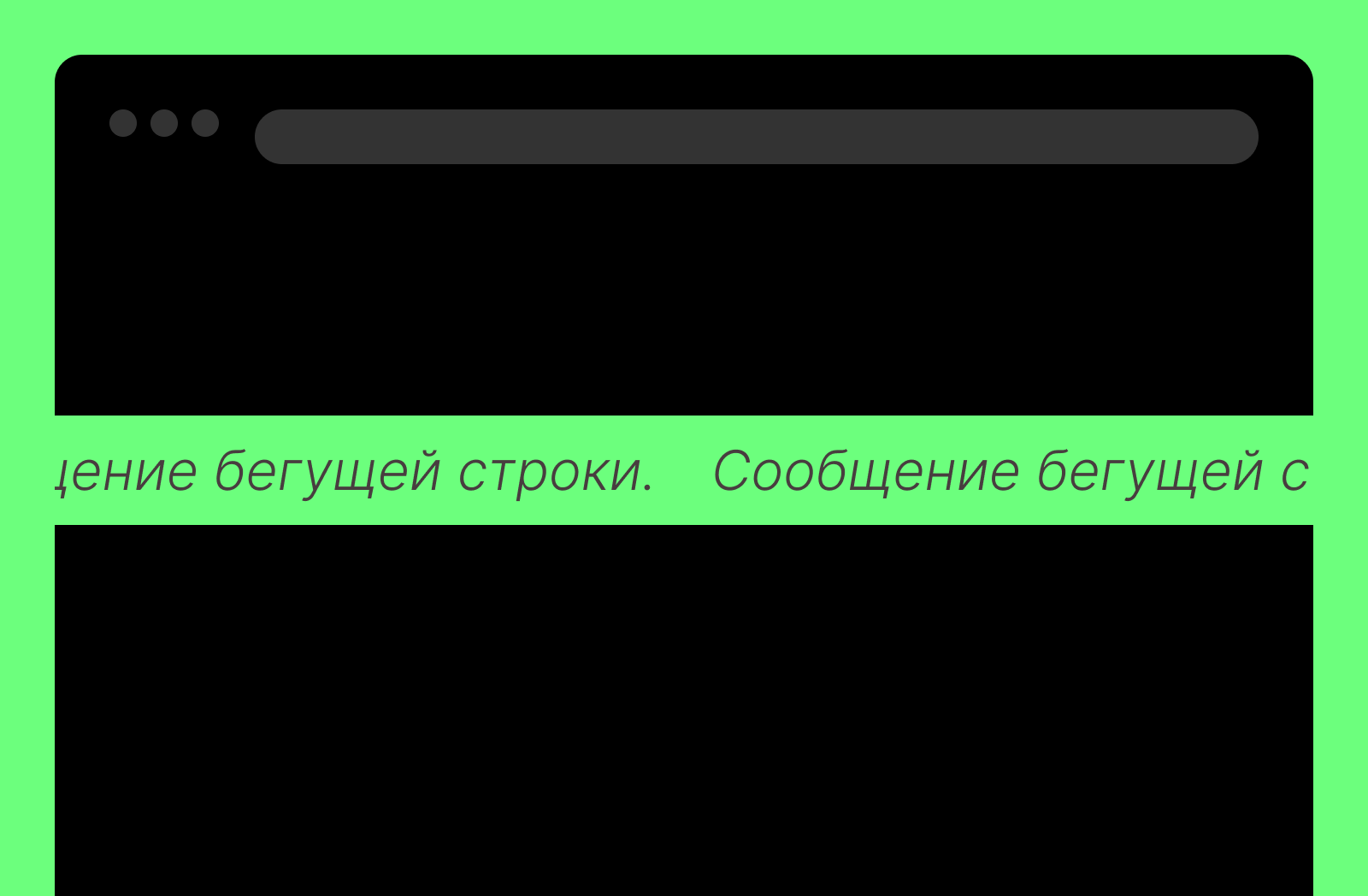 Хотите рассказать о чём-то срочно и много раз подряд? Вот она, бегущая строка. Бежит себе по сайту, а человек догоняет смысл.