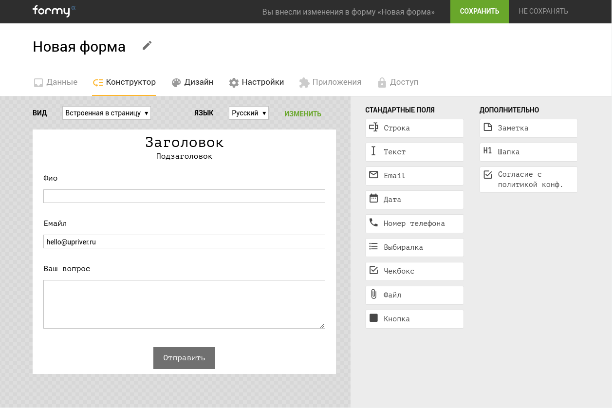 Приложение позволяет получать лиды в CRM Bitrix24, полученные через формы на ваших сайтах. Формы создаются в редакторе на сайте https://formy.upriver.ru. Для работы необходимо зарегистрироваться на сайте.