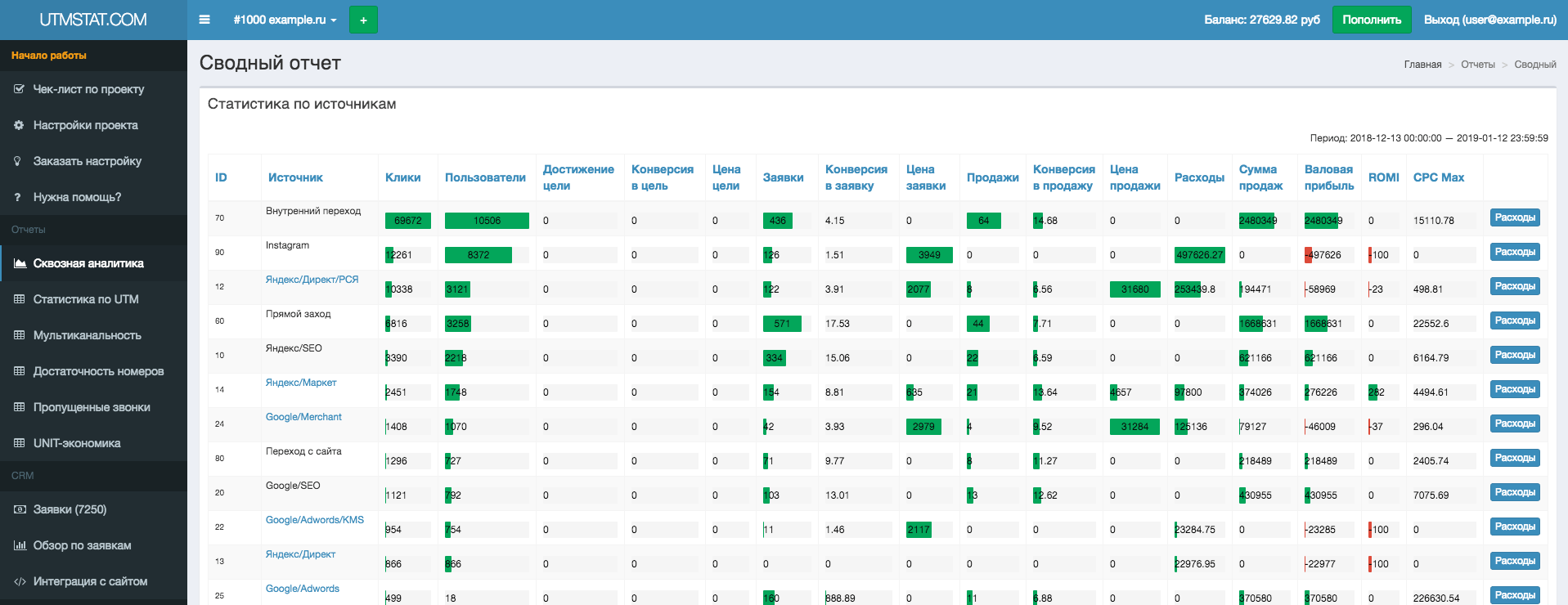 Задача UTMSTAT - показать, с каких рекламных источников идут лиды и продажи, и сколько вы на этом заработали.
