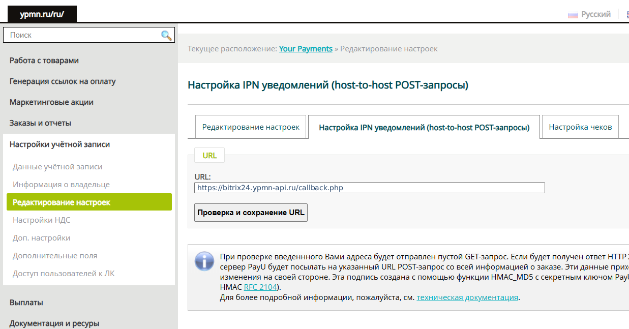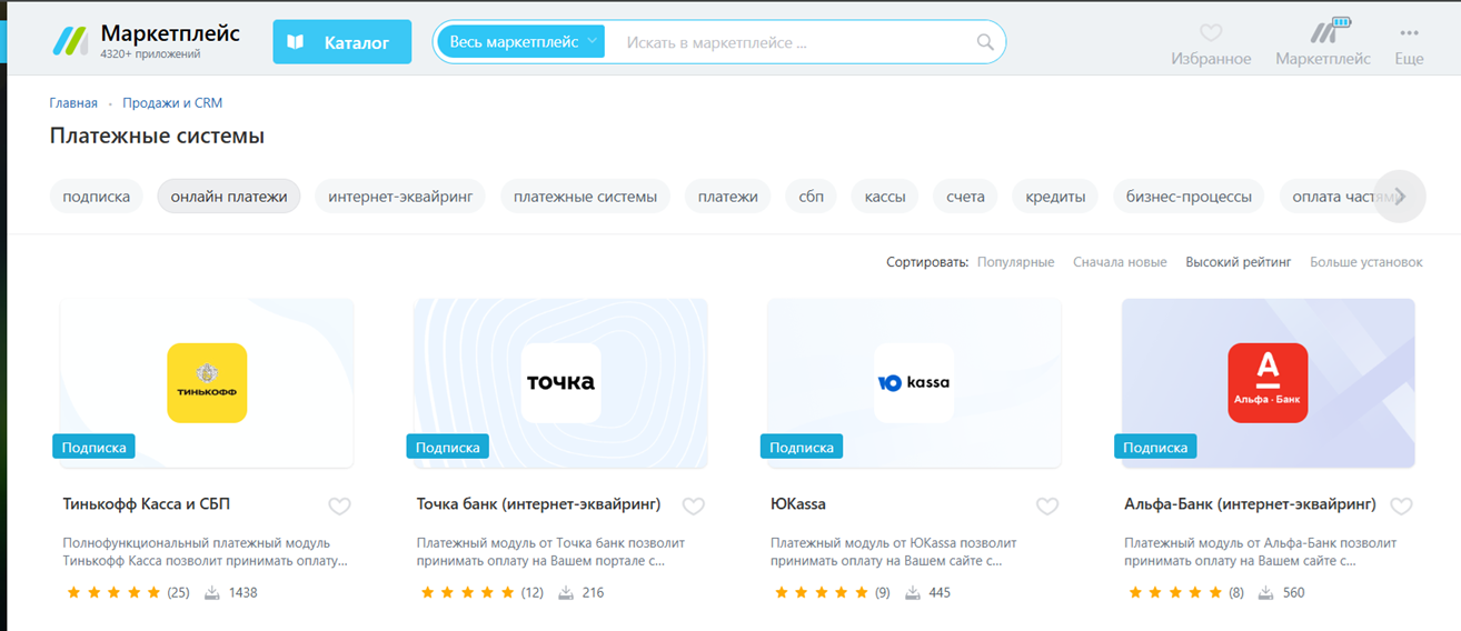 Приём платежей в интернет-магазине Bitrix24
