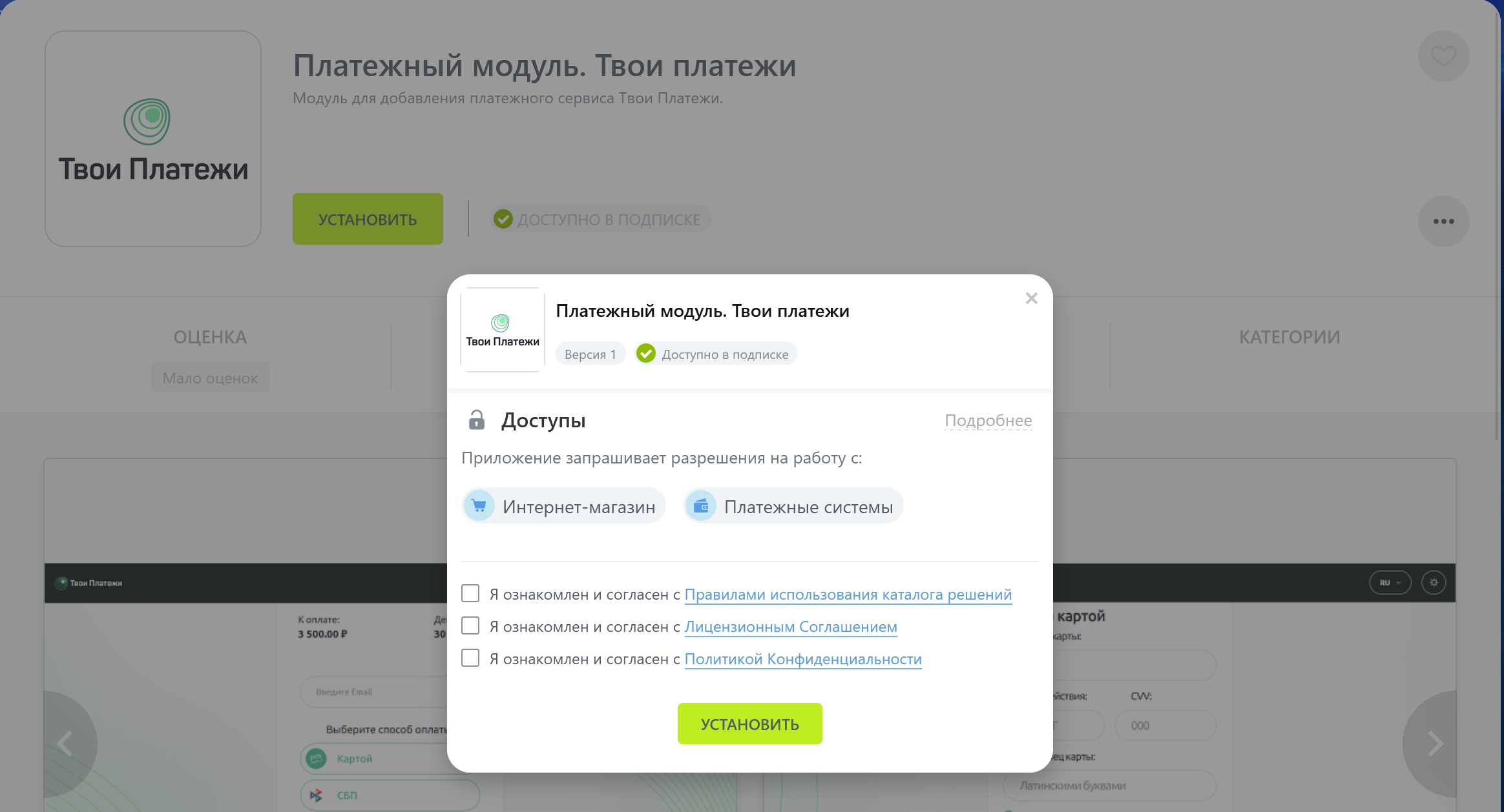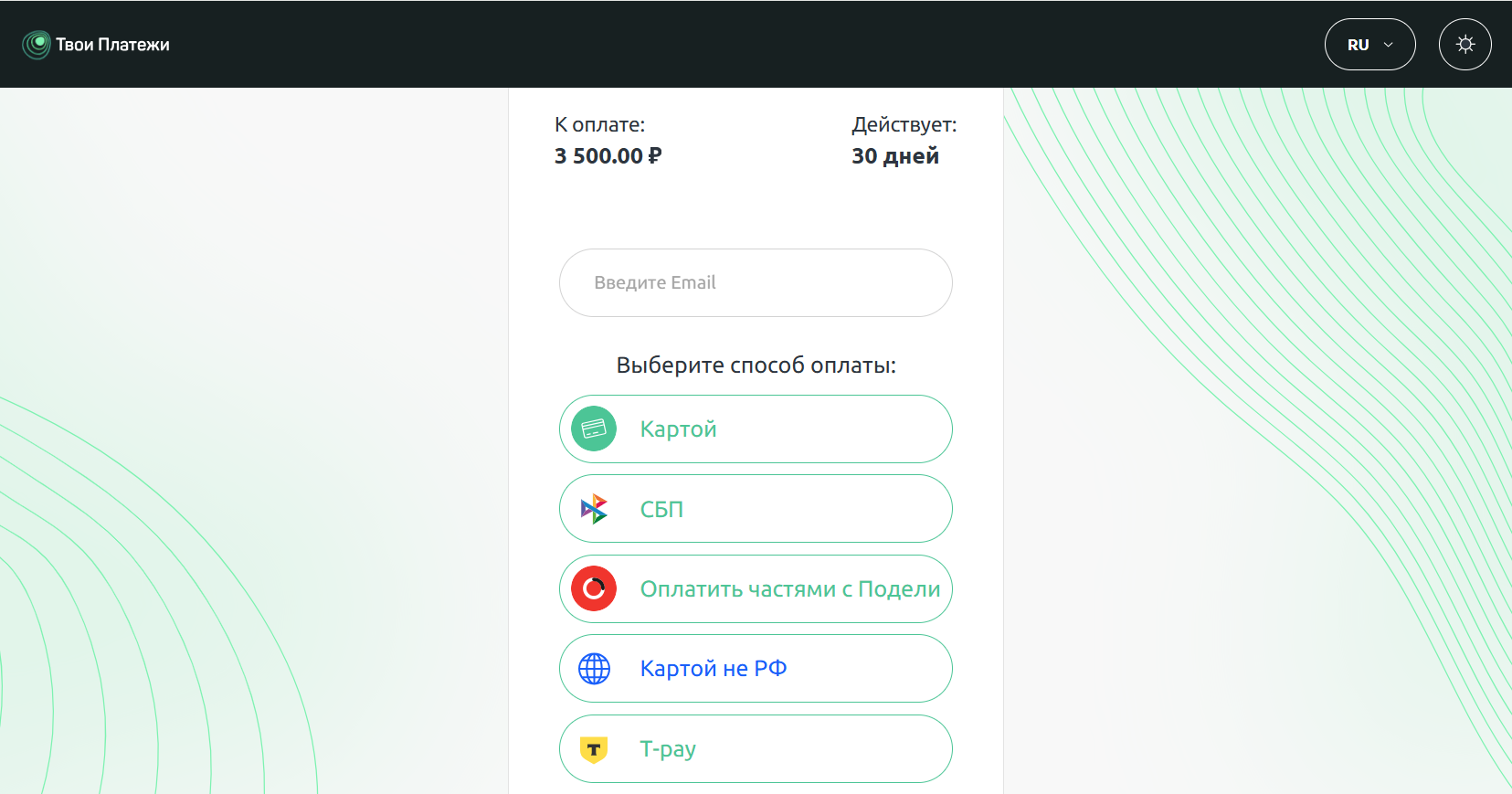 Подключить платежи