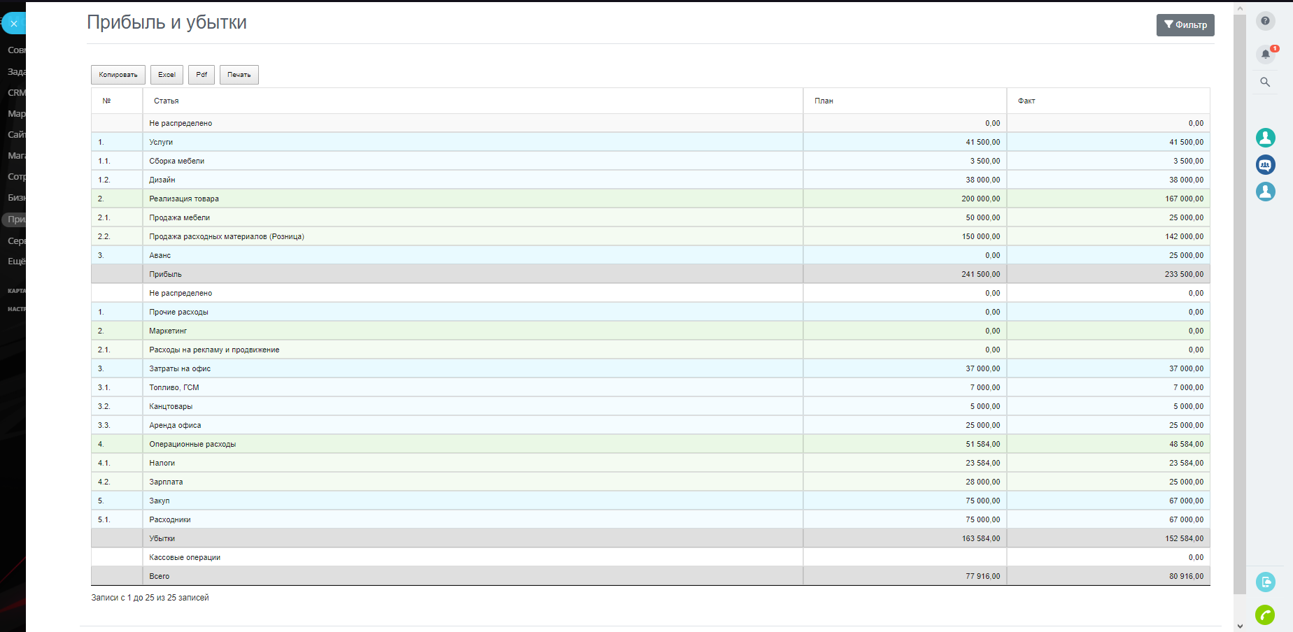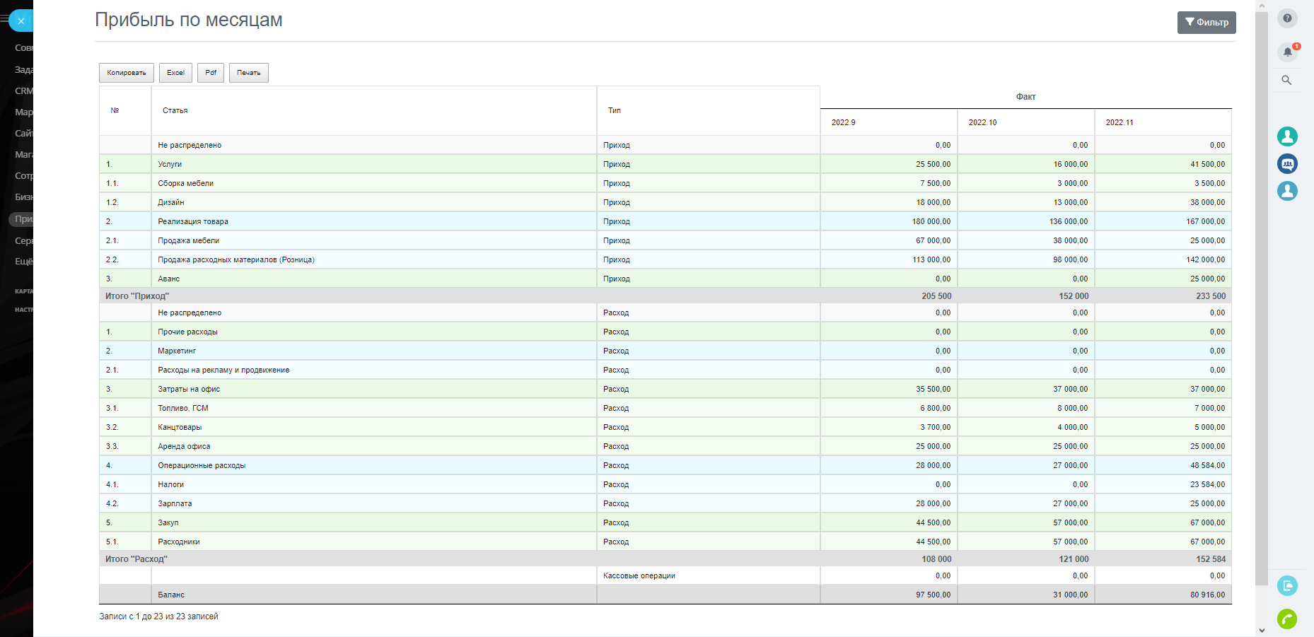 очень не удобное приложение. Неправильно настроены для отображения остатки в кассах... нет корректного отчета по ДДС, а если выгружать данные в Excel, то суммы выгружаются с точками, что воспринимается как текст...