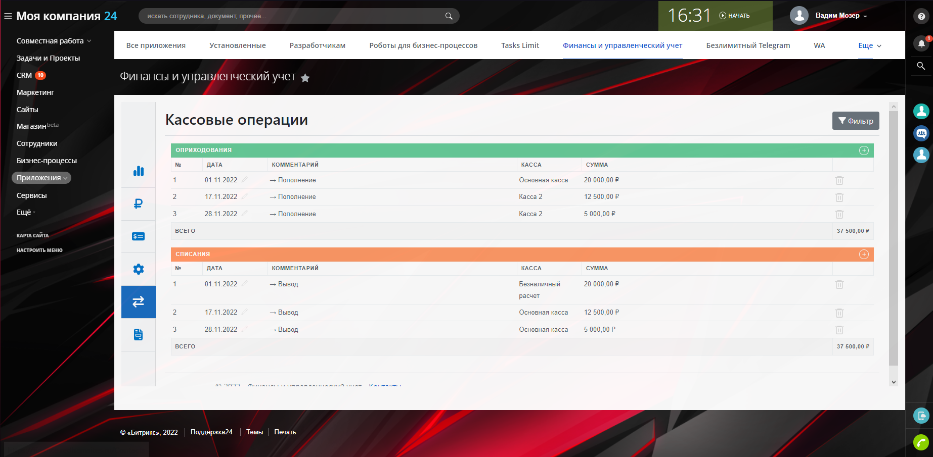 Это лучшее что представлено в Битрикс, работа в сделках, роботы, система учета по категориям, автоматизация! Всем рекомендую, Вы потратите 20 минут на настройку и Вы поймете всю прелесть, будете знать сколько в какой кассе денег и сможете этим управлять в СРМ. Добавьте пожалуйста бюджеты по категориям, и будет законченное приложение.