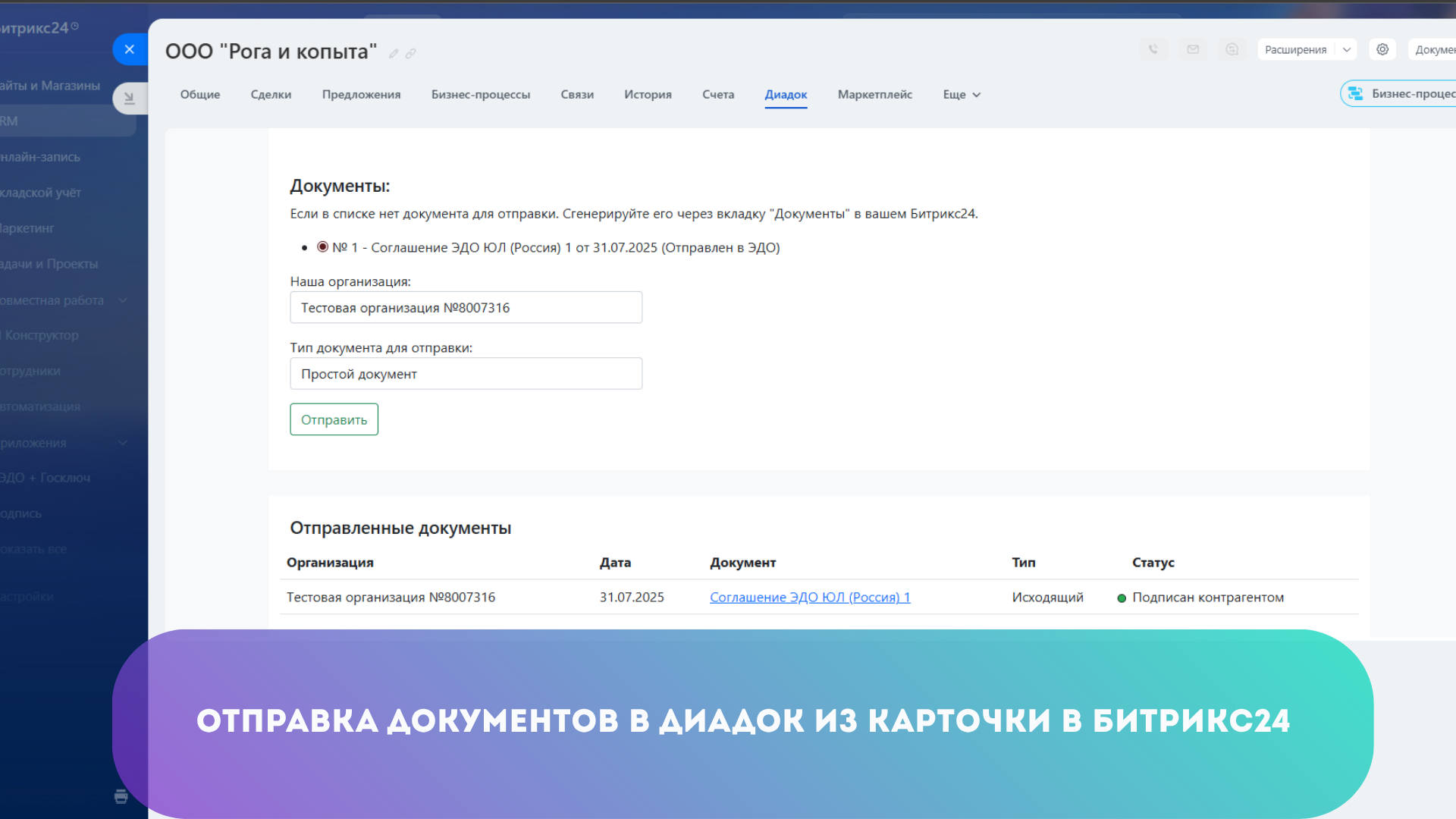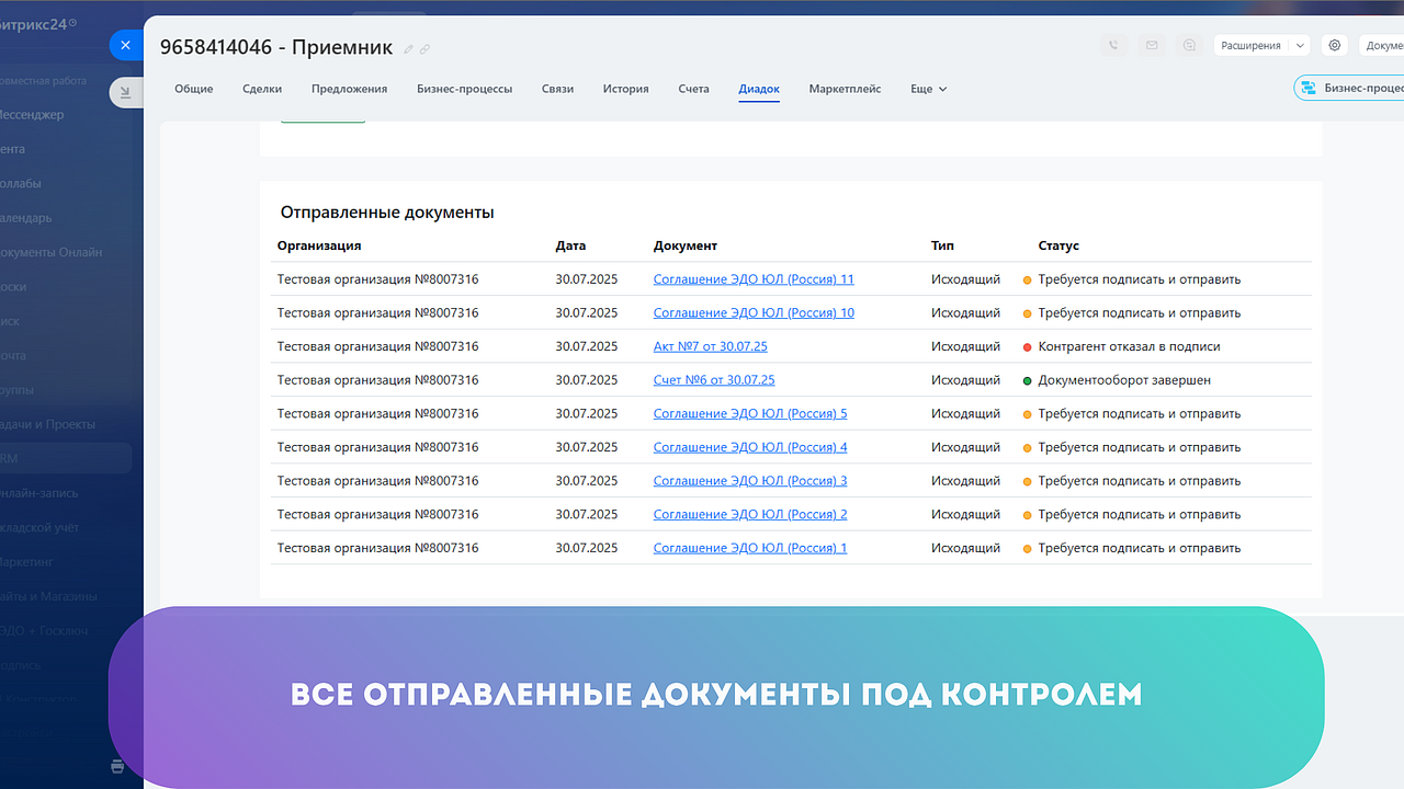 Отправляйте документы в ЭДО Диадок и обрабатывайте входящие не выходя из Битрикс24