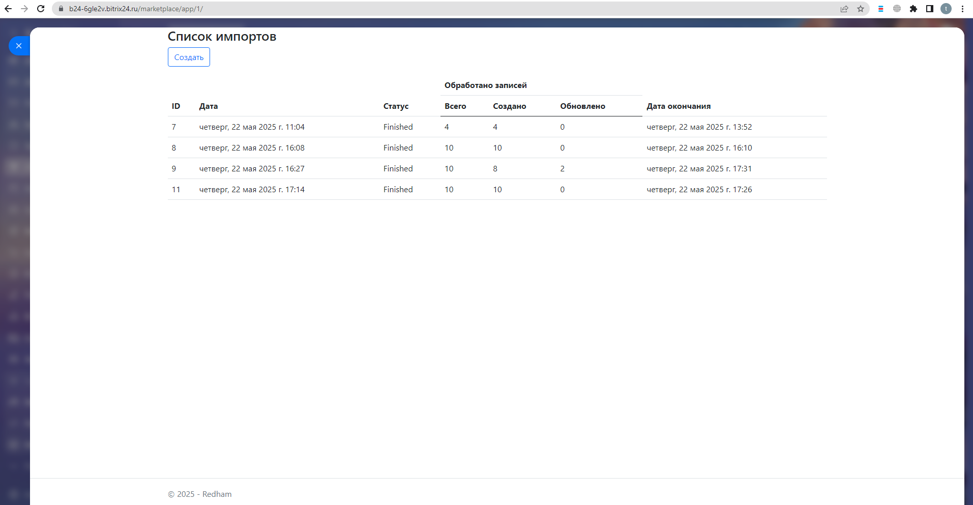 - Ожидайте пока задача на импорт отработает