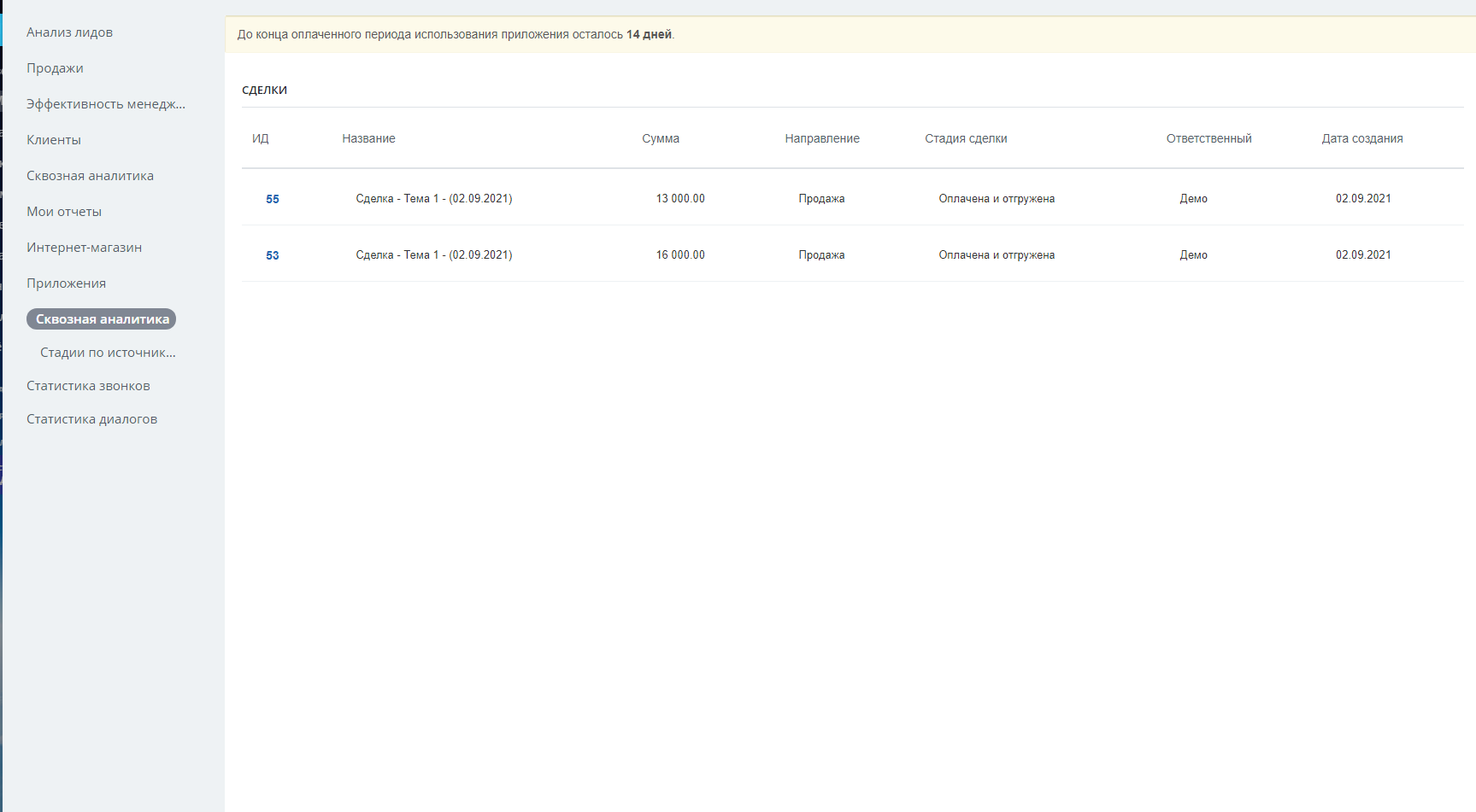 Данное приложение позволяет отслеживать конверсию лида в сделку и далее. Вы можете отследить сколько сделок из каких источников было сконвертировано в успешные и проигранные, так же можете видеть конверсию каждого из источников и сумму сделок.