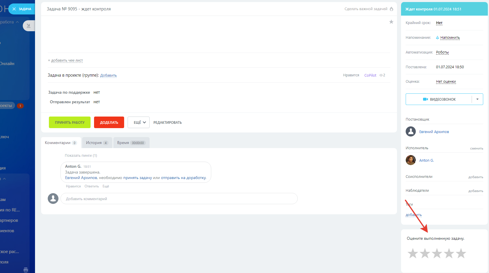 Оценивайте на какую оценку выполнил сотрудник Вашу задачу!
