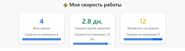 - Скорость обработки - менеджер увидит свои сильные и слабые стороны в обработке сделок.
