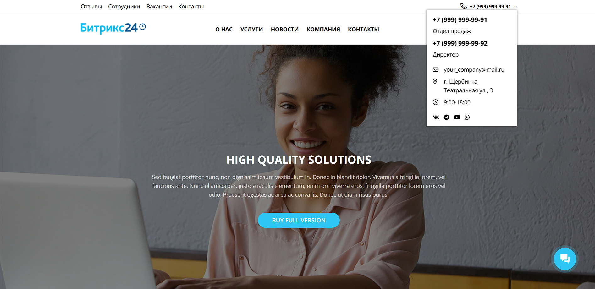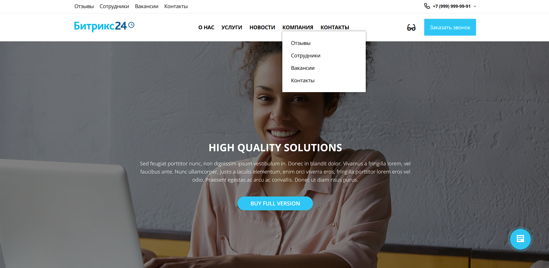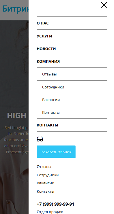 Блок шапки для Битрикс24.Сайты, которая имеет переход в версию сайта для слабовидящих, позволяющую организовать многоуровневую структуру меню для сайта.