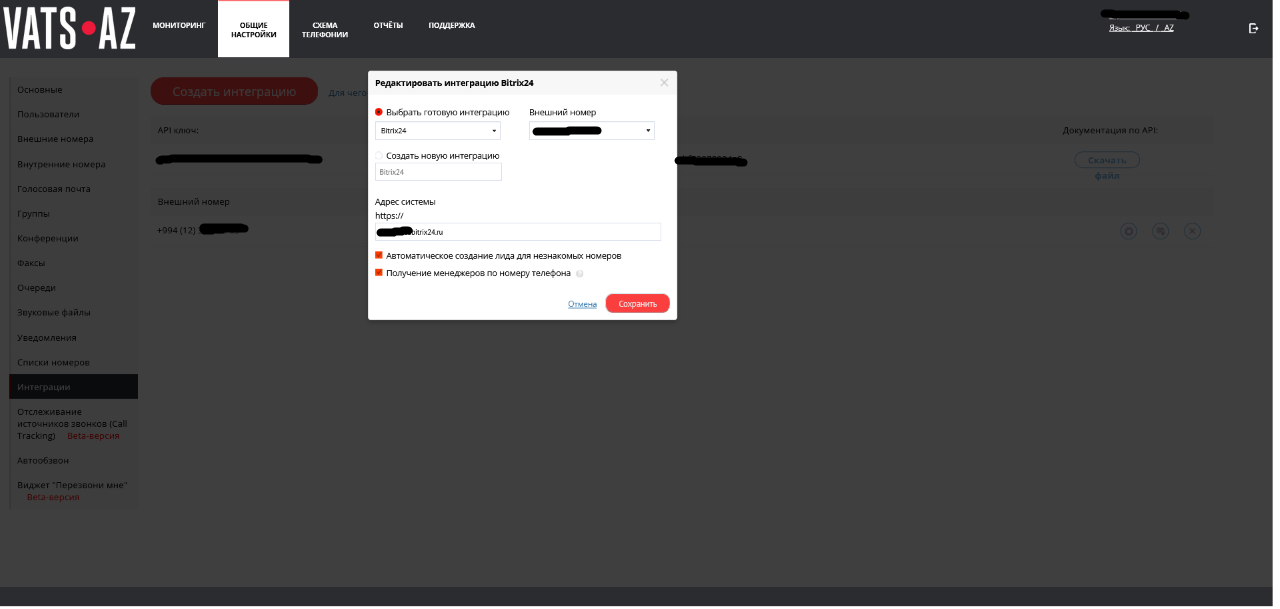 Автоматическое создание лидов при звонках с неизвестных номеров.