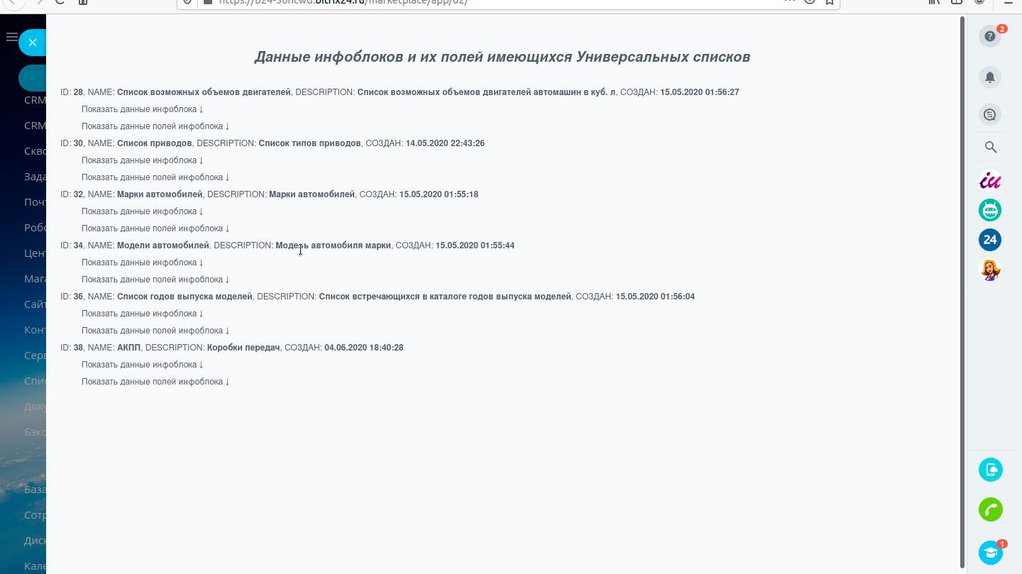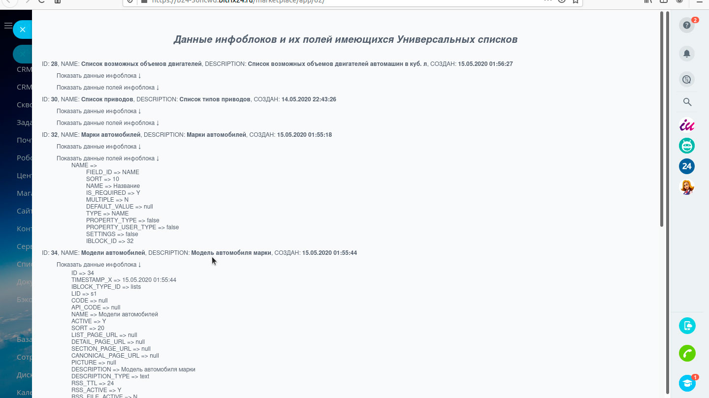 Приложение позволяет на одной странице посмотреть данные инфоблоков и их полей имеющихся Универсальных Списков.