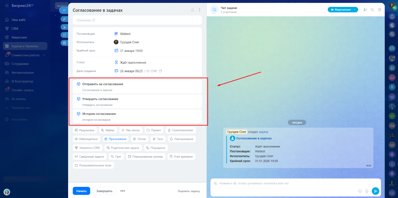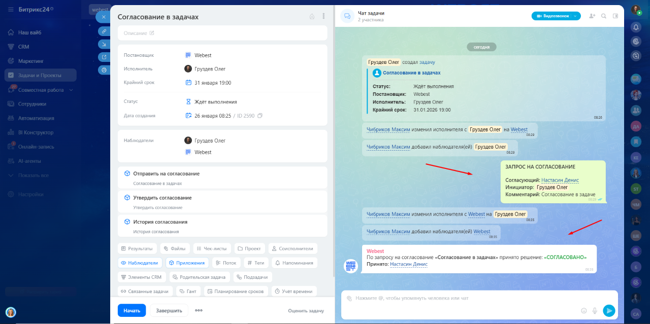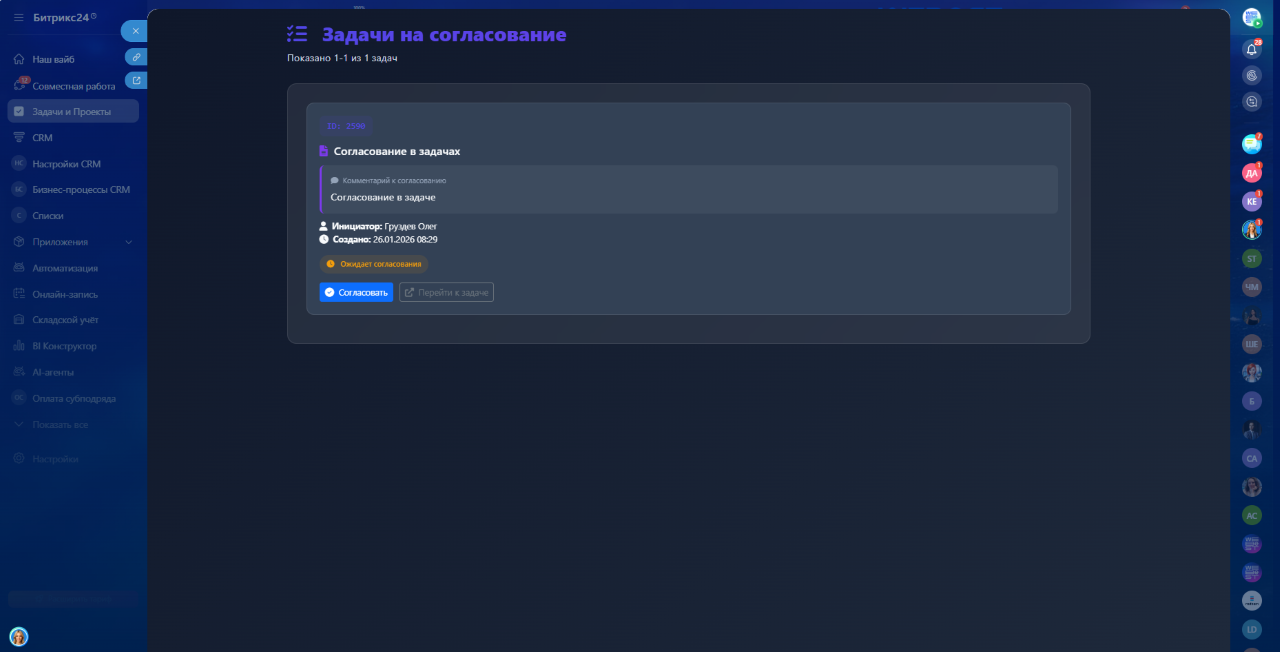 Простое и удобное согласование задач в Битрикс24