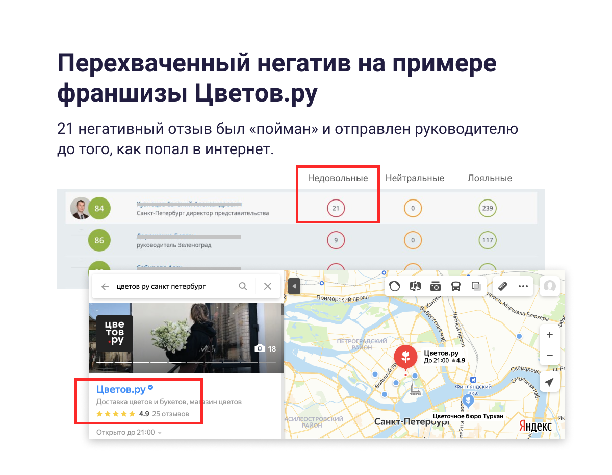 Благодаря этому модулю, вы сможете оперативно отслеживать проблемы и работать на улучшение сервиса и бизнес-процессов вашей компании.