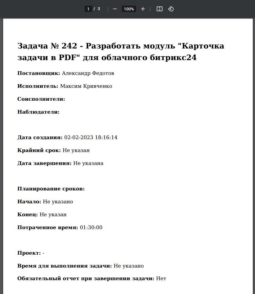 Данный модуль отлично подойдет для тех, кто часто работает с задачами в режиме "оффлайн", когда, например, необходимо распечатать карточку задачи для обсуждения на собрании или планерке.