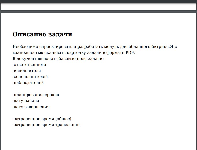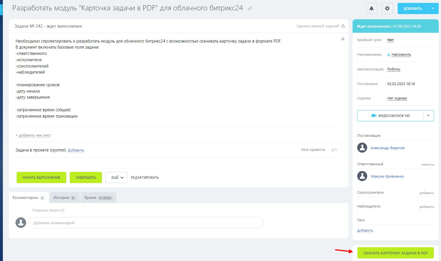Решение позволяет скачать карточку задачи в виде pdf файла.