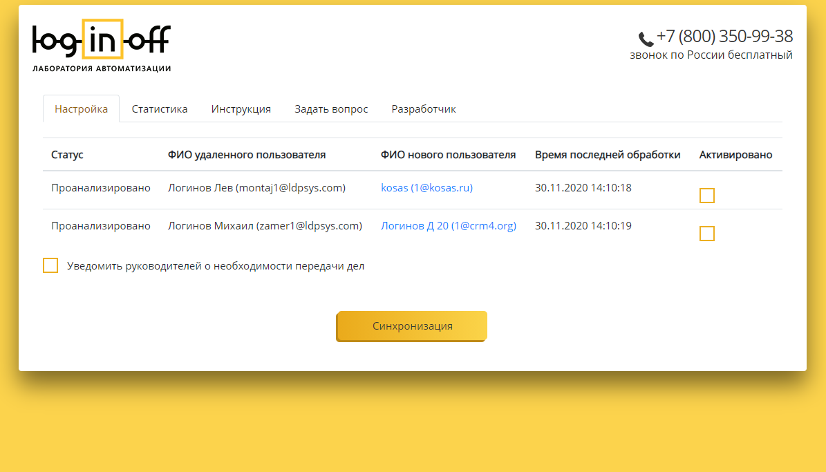 Автоматическая передача дел уволенных сотрудников [FIRED.FIX4.ORG]