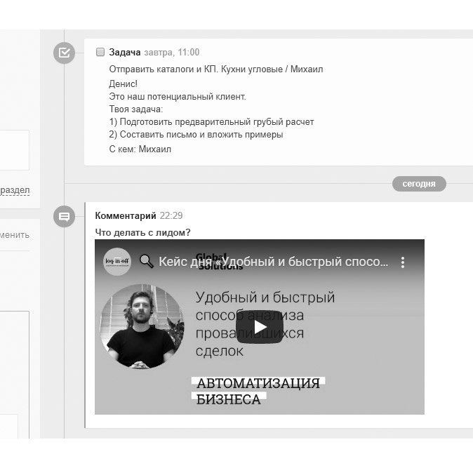 - Система сама начинает контролировать менеджера, напоминать и подсказывать ему порядок всех последующих действий.