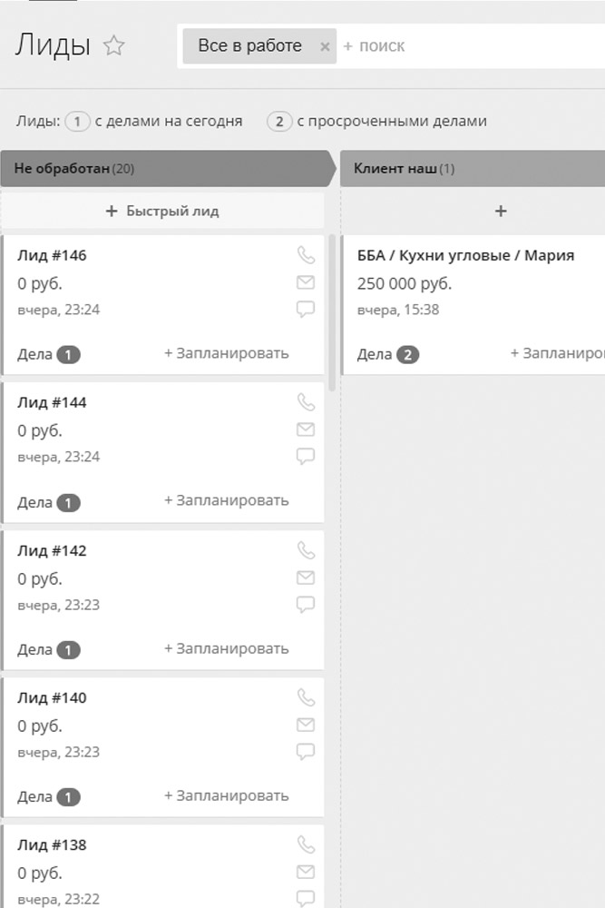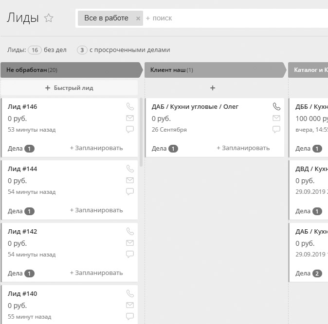 - Воронка ЛИДов – в ней мы собираем все обращения клиентов;