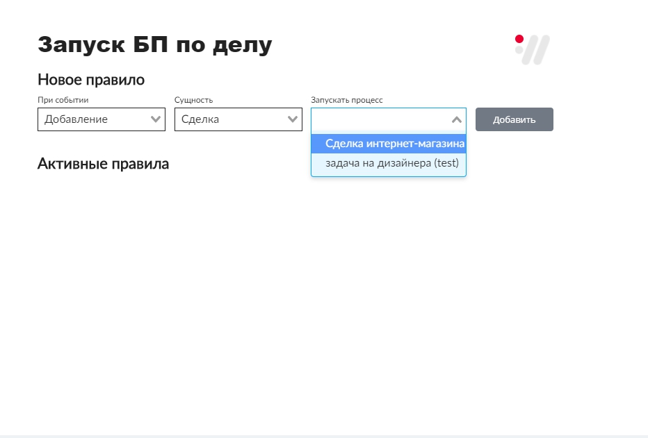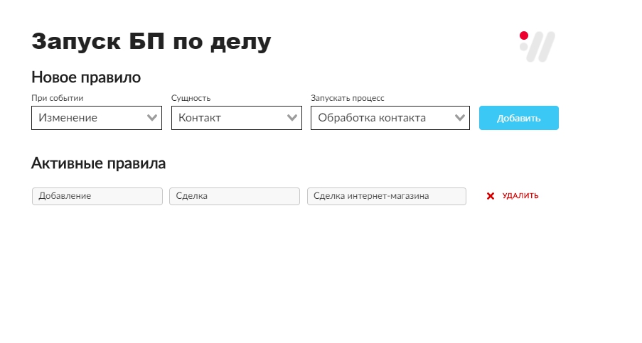 Приложение от WEBROVER позволяет запускать бизнес-процессы в Лидах, Сделках, Контактах и Компаниях, при добавлении дела или при его изменении.