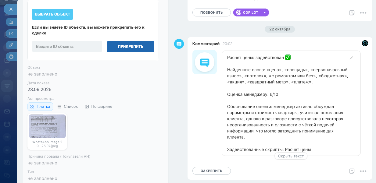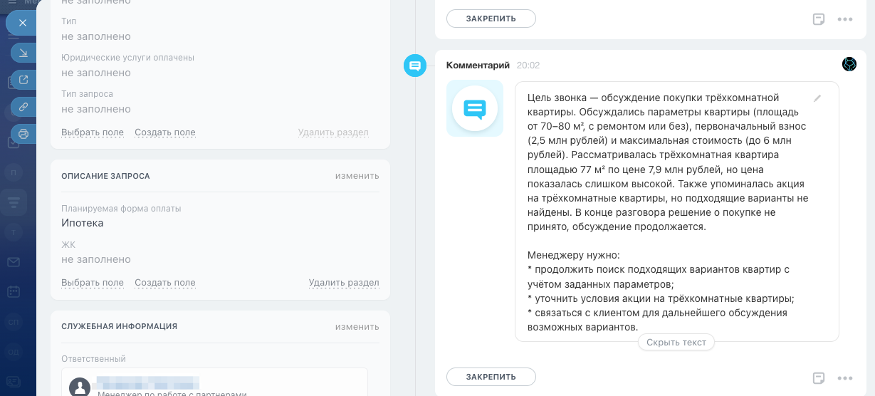 ИИ Аналитик — приложение для анализа звонков и работы с лидами/сделками. Сервис автоматически транскрибирует аудиозвонки, создаёт краткое резюме разговора, определяет тип звонка и оценивает работу менеджера.