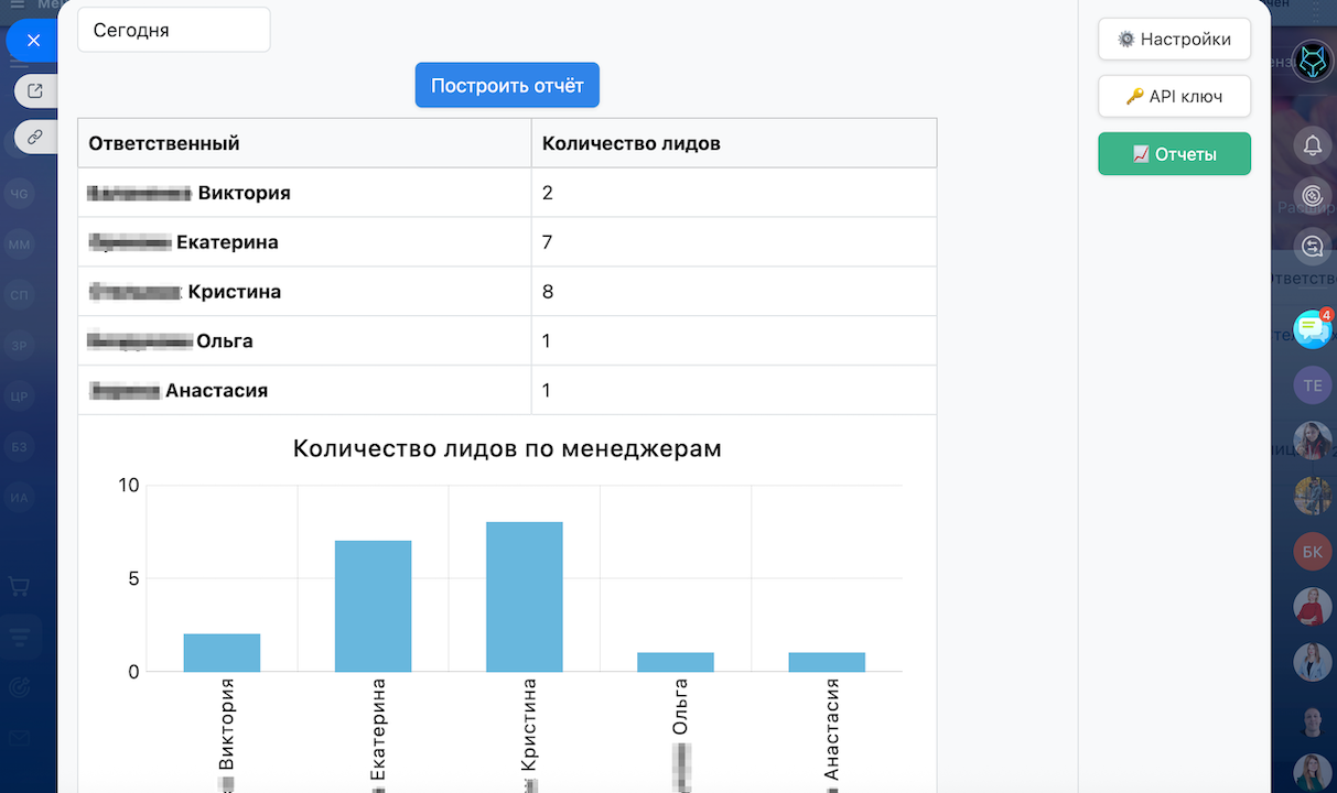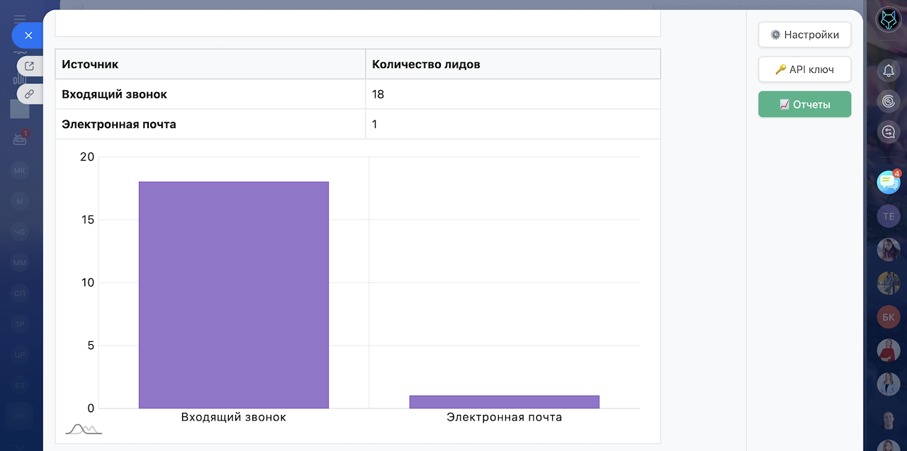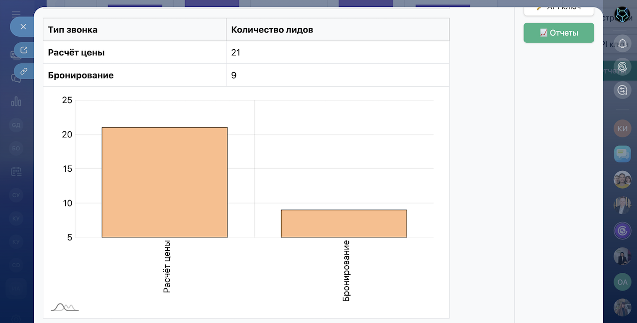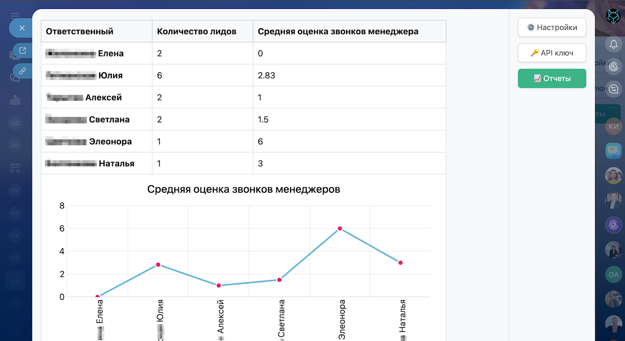3) Отчёты для контроля качества и оптимизации работы отдела продаж;