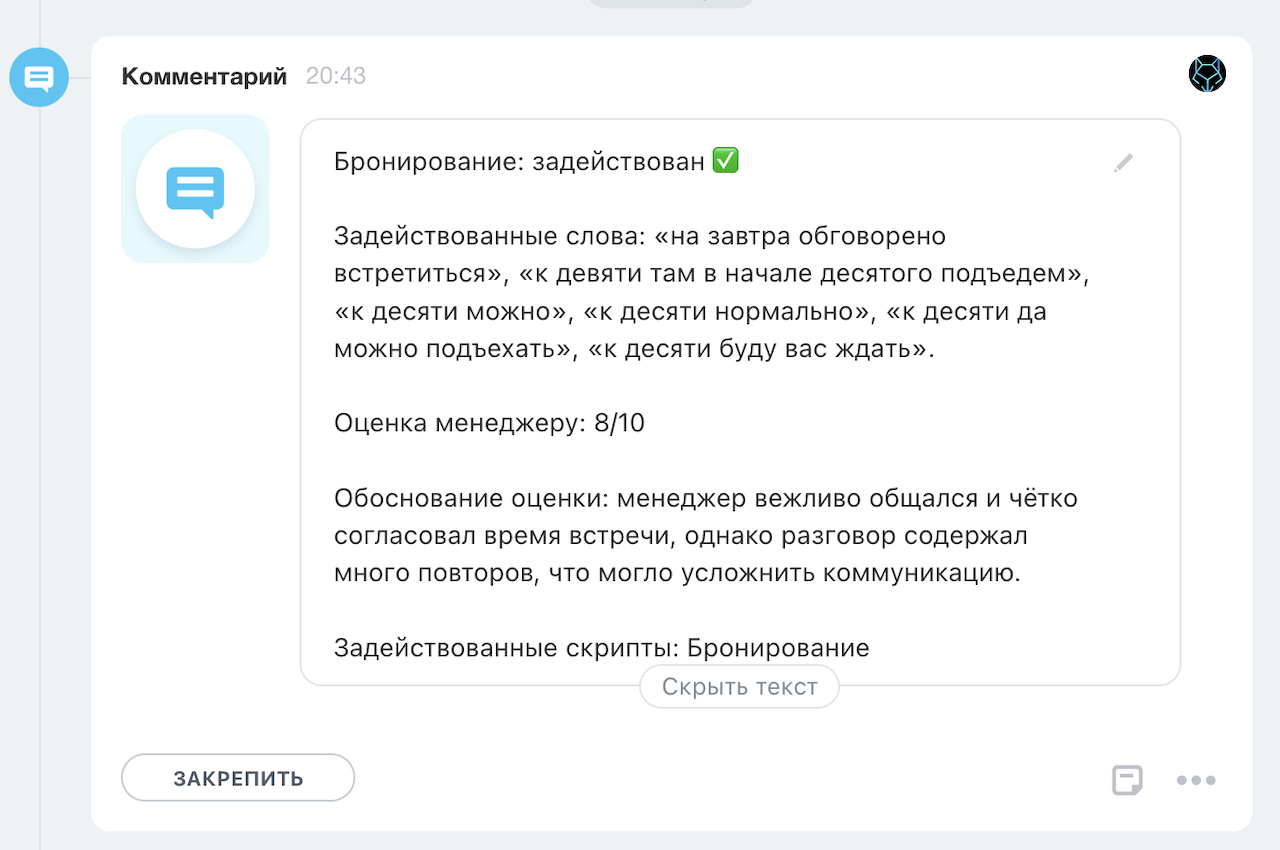 2) Аналитику звонков: ключевые слова, эффективность коммуникации;