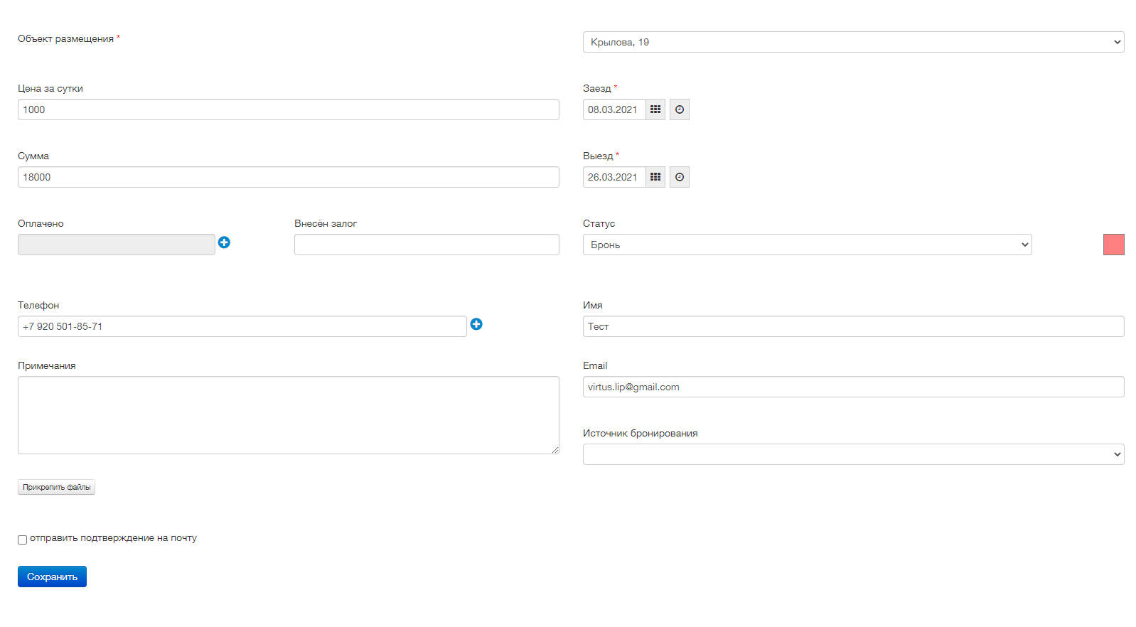1. Бронирование в несколько кликов для постоянных гостей.Гость знает в какой квартире хочет проживать и не нуждается в подборе вариантов? — Вам достаточно нажать кнопку “Забронировать” в сделке и указать нужную квартиру. После этого нужные даты будут автоматически закрыты на всех подключенных площадках вроде Booking.com, Airbnb, Авито и других.