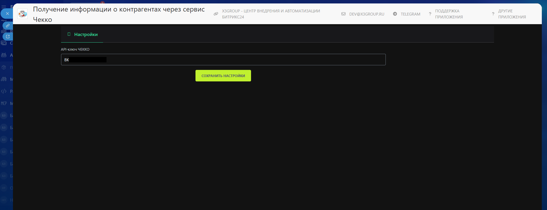 Получение информации о контрагентах через сервис Чекко