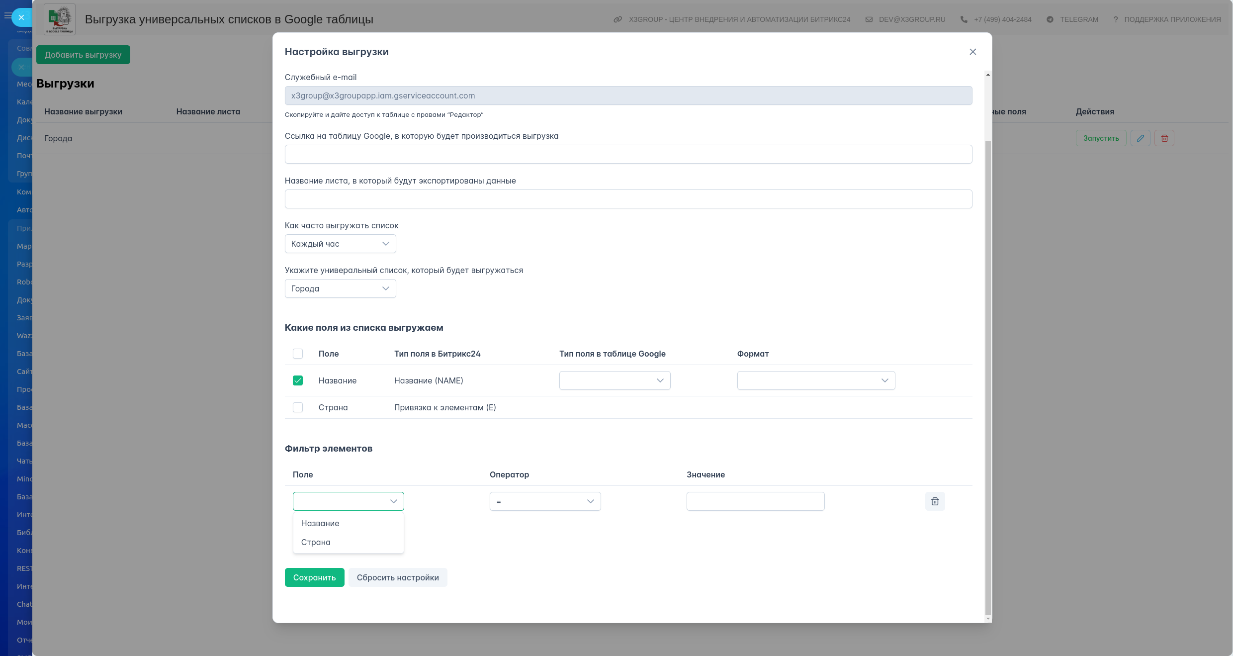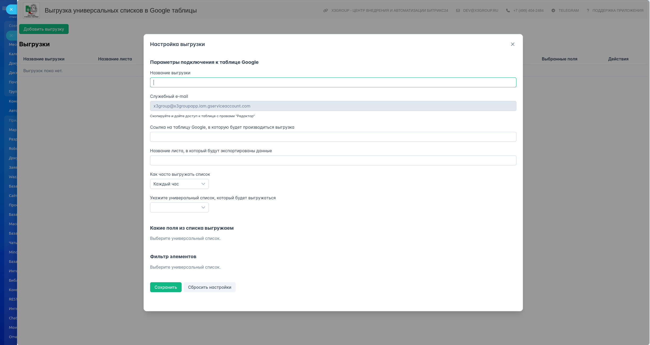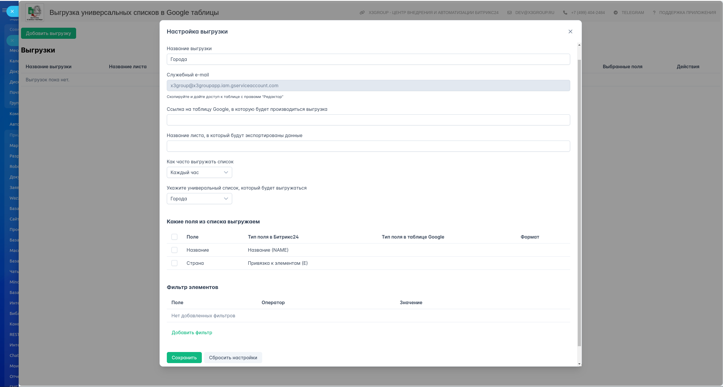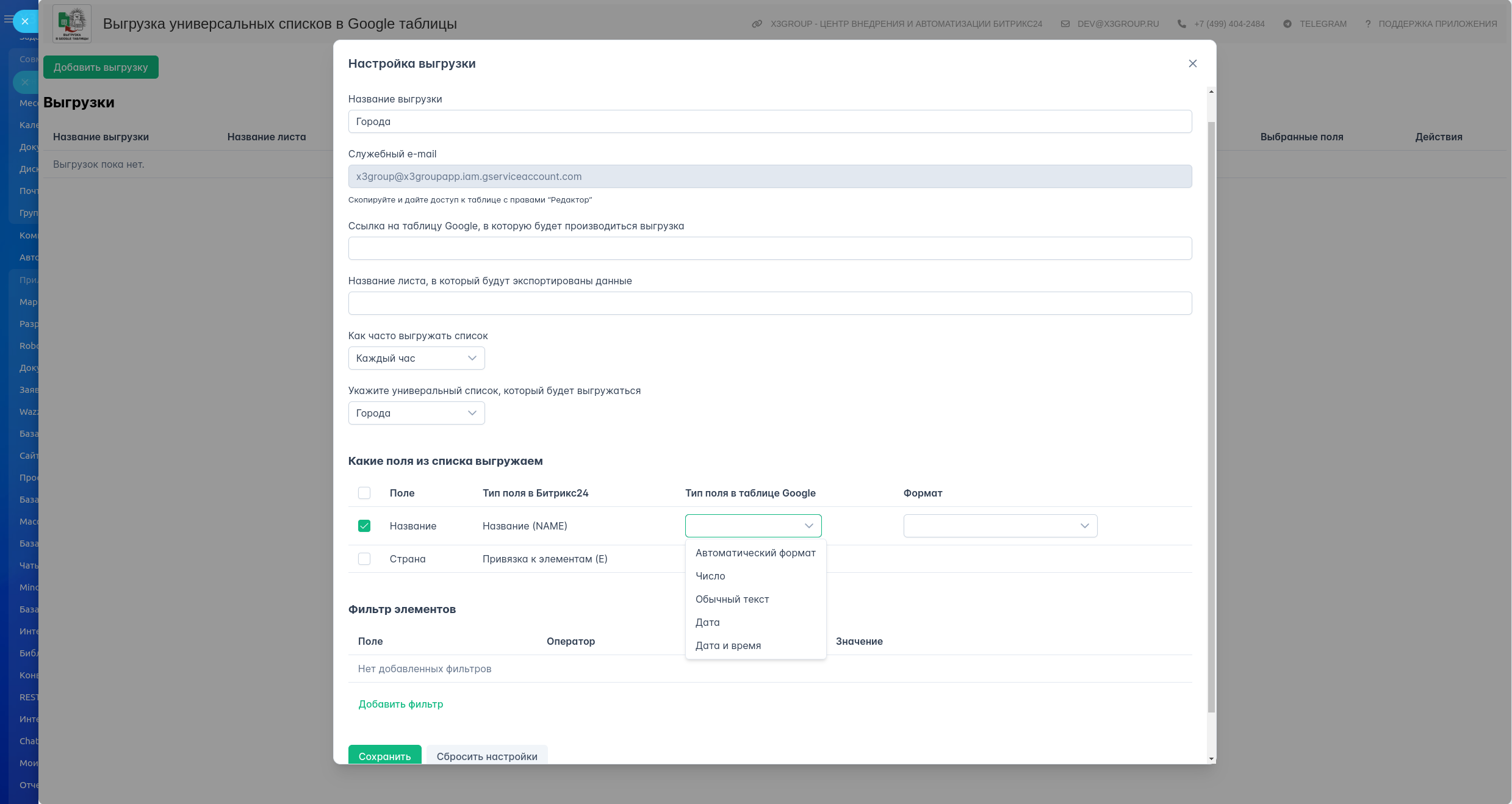 Наше приложение позволит Вам выгружать универсальные списки в Google таблицу.