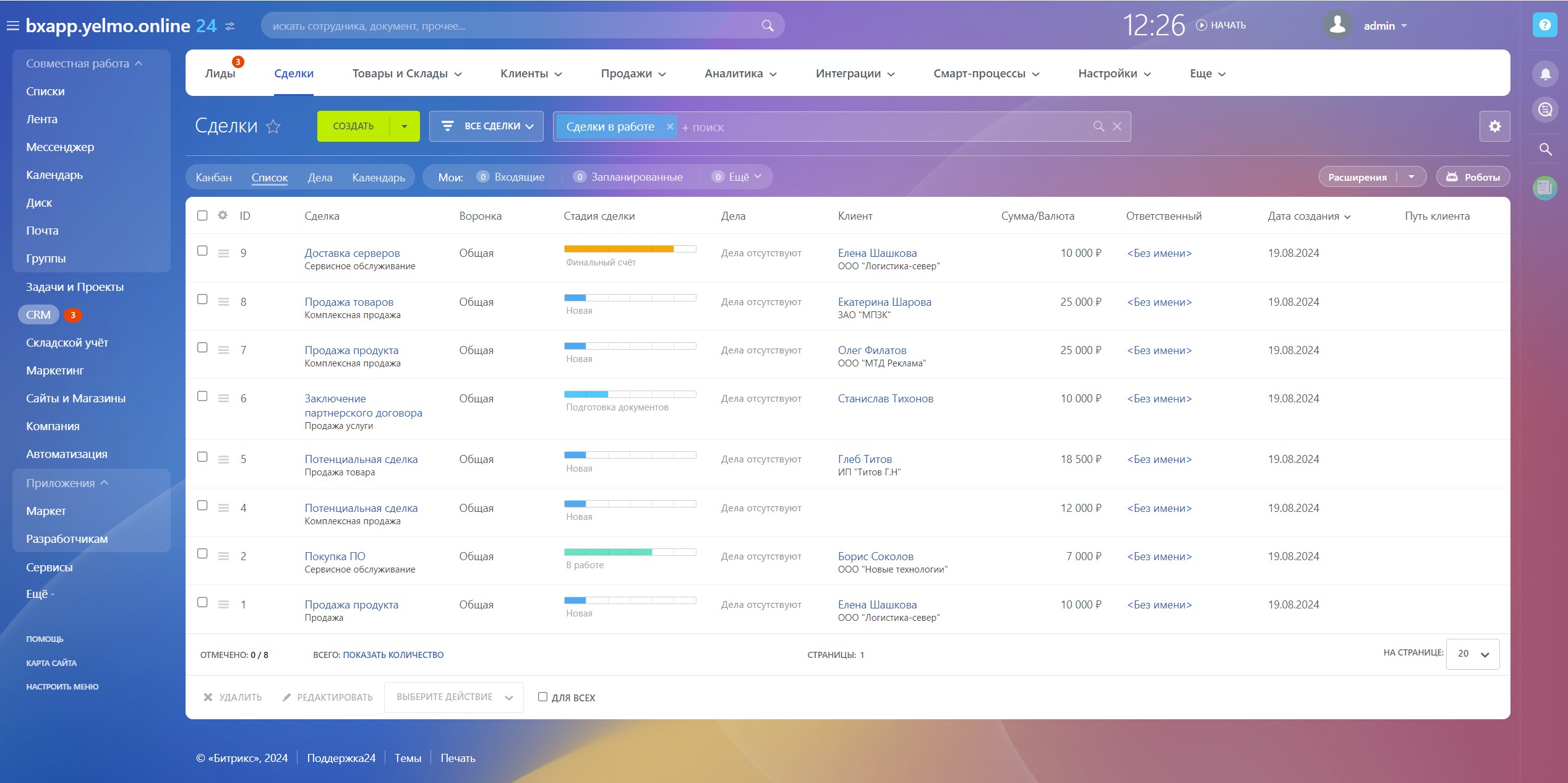 Приложение позволяет решить большой спектр задач, как технических (массовое изменение значений, удаление дублей и т.д.), так и текущих задач (изменение стадий, смена ответственного и .т.д)
