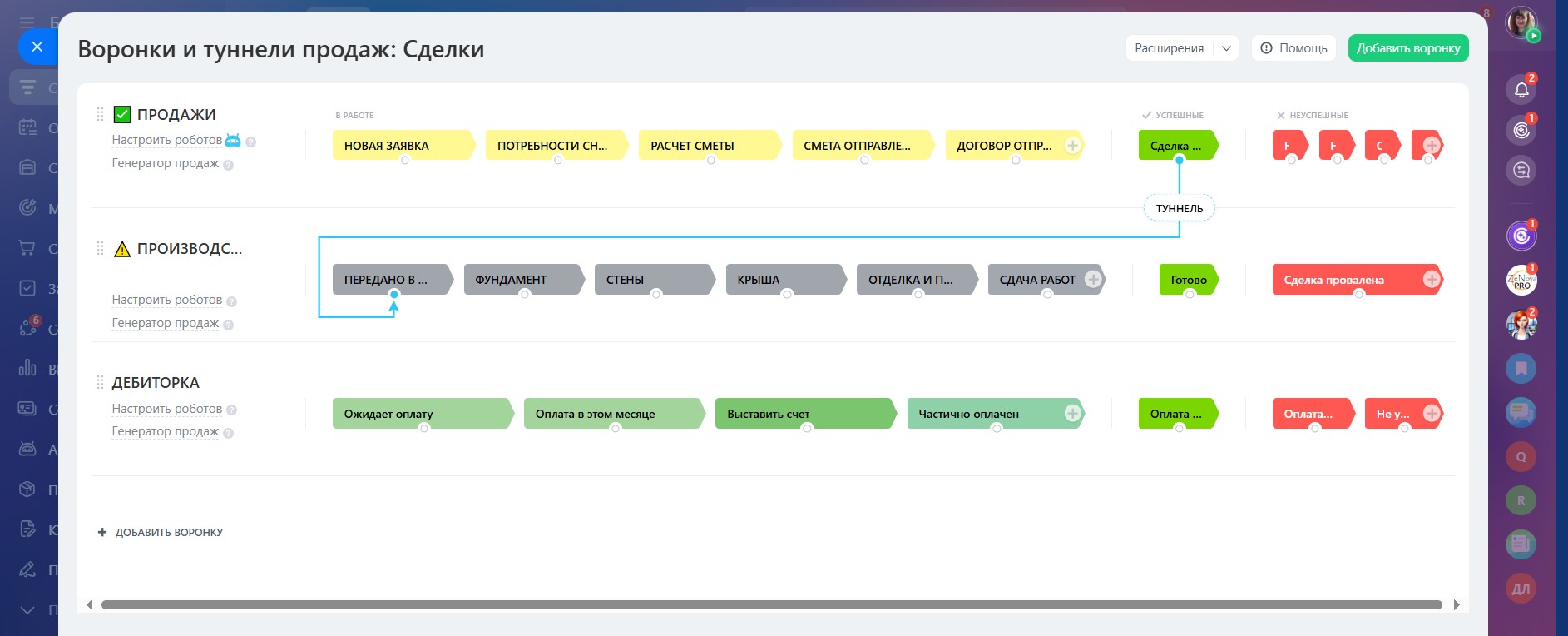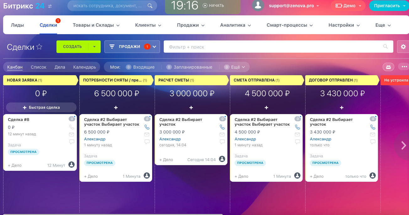 - Финальные стадии: успешно, провалена, дорого, не устраивают сроки