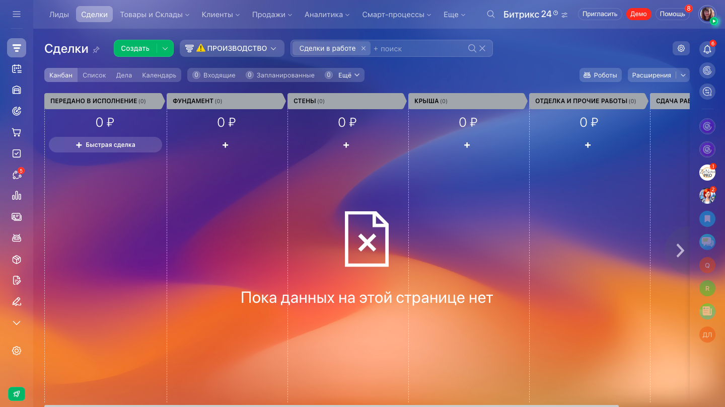 Подходит для организаций в любых направлениях по строительству частного секторв. Данное решение включает в себя все последние новинки Битрикс24. Все готово для работы: нужные поля, данные, воронка продаж, исполнения контракта строительства и дебиторская задолженность. ДЕМО ВЕРСИЯ 14 дней