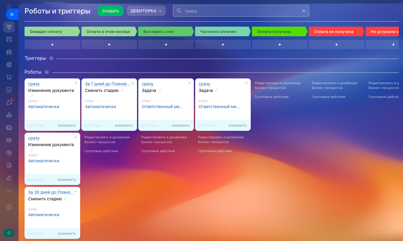 - Финальные стадии: оплачен, не оплачен