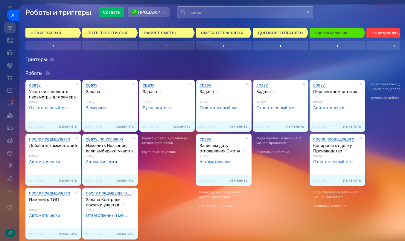 CRM для индивидуального загородного жилого строительства помогает работать как компании внутри, так и с покупателями. В данном решении корректно учтены все этапы для правильного расчета конверсии, контроля менеджеров и оперативно отследить этап работы с по каждому объекту строительства. Мы стремимся свести к минимуму трудозатраты и человеческий фактор. Готовая CRM прекрасно справляется с этой задачей!
